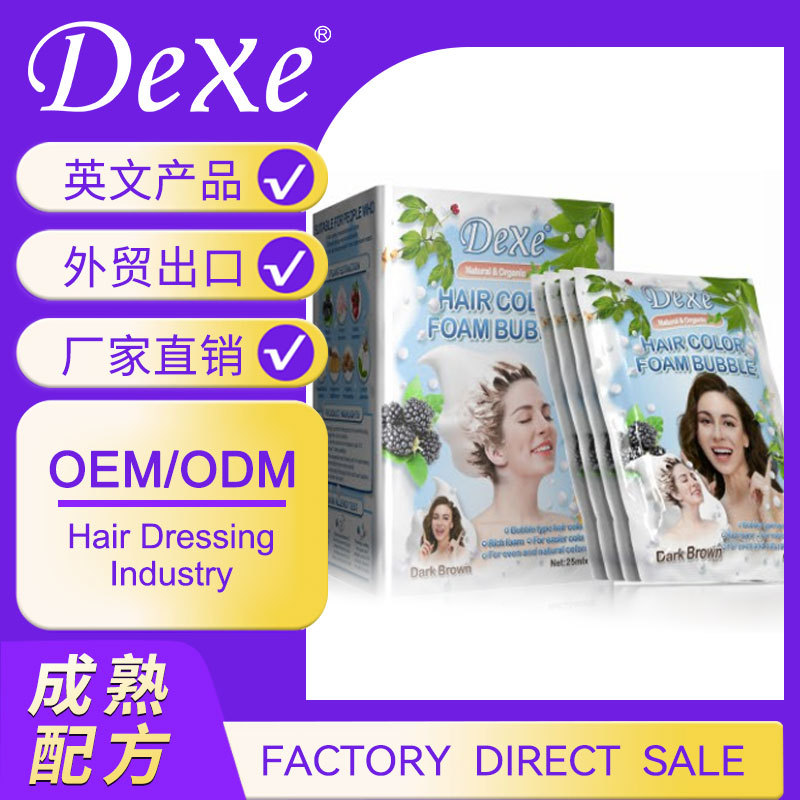 Dexe染发剂植物草本霜染发剂黑栗子变色半永久泡泡染外贸专供批发