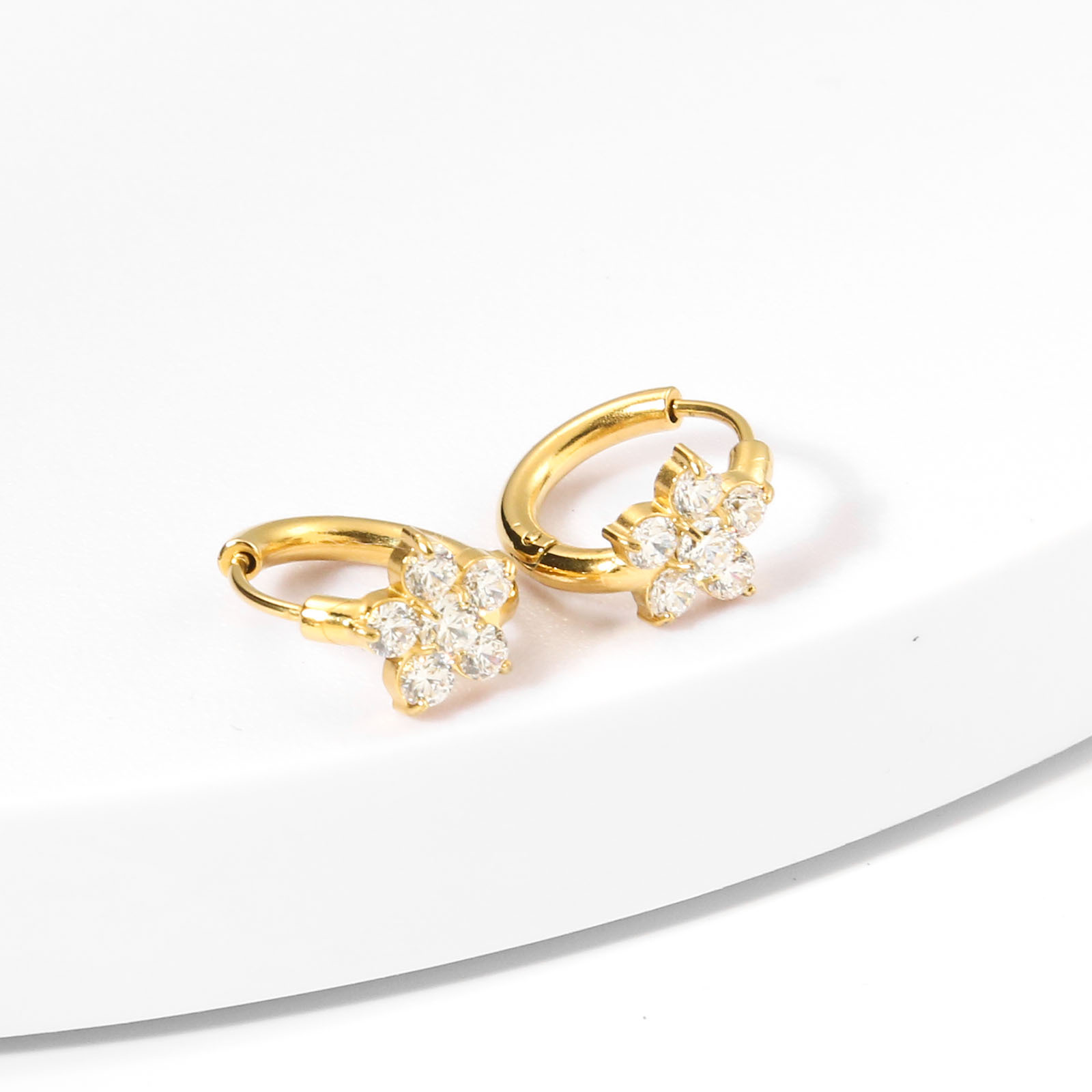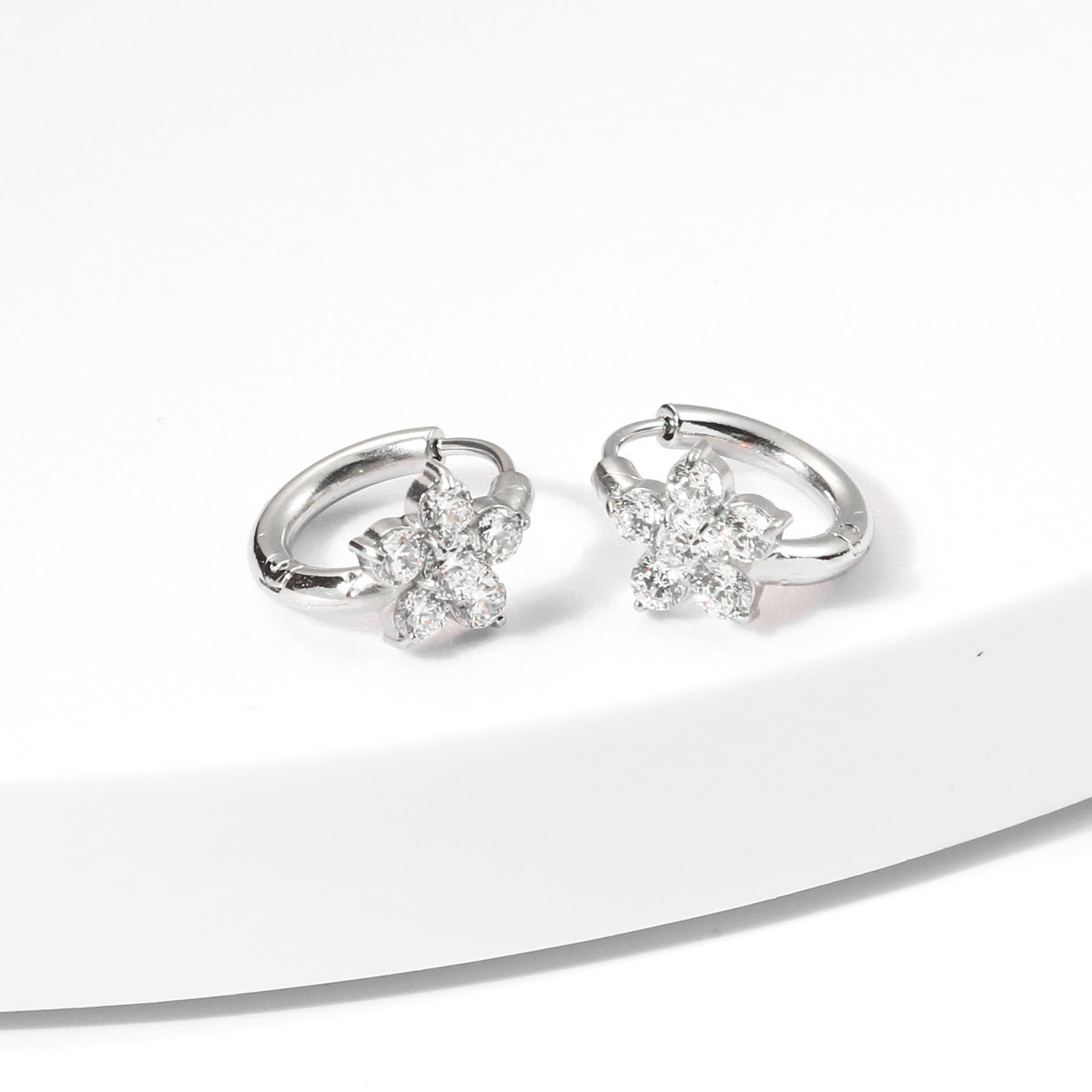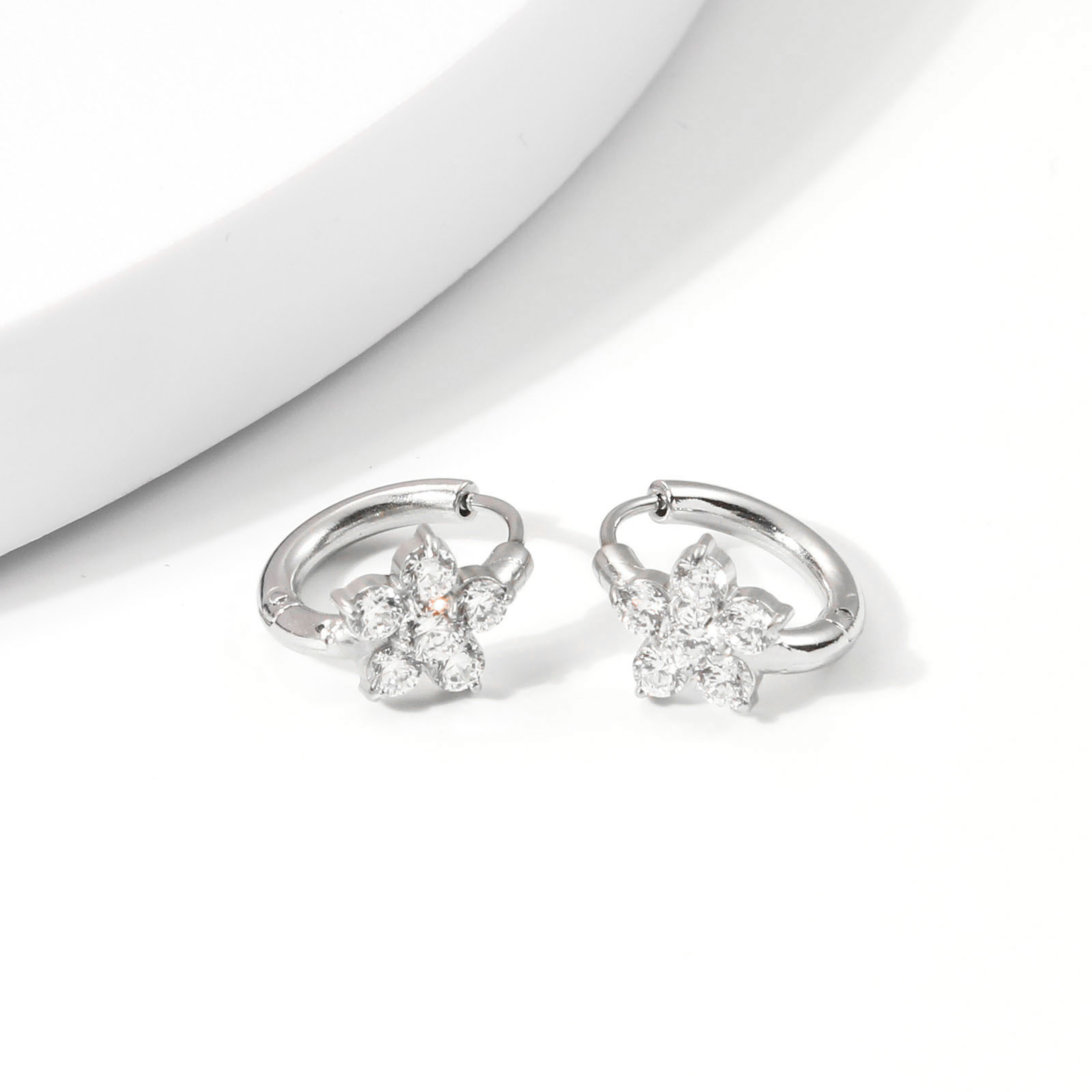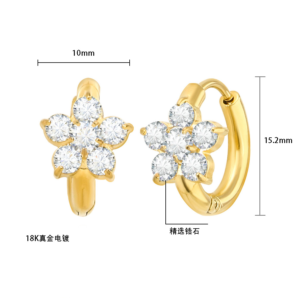 产品名称:SDA新款Ins风不锈钢花朵锆石耳圈 女士精致韩流时尚耳环