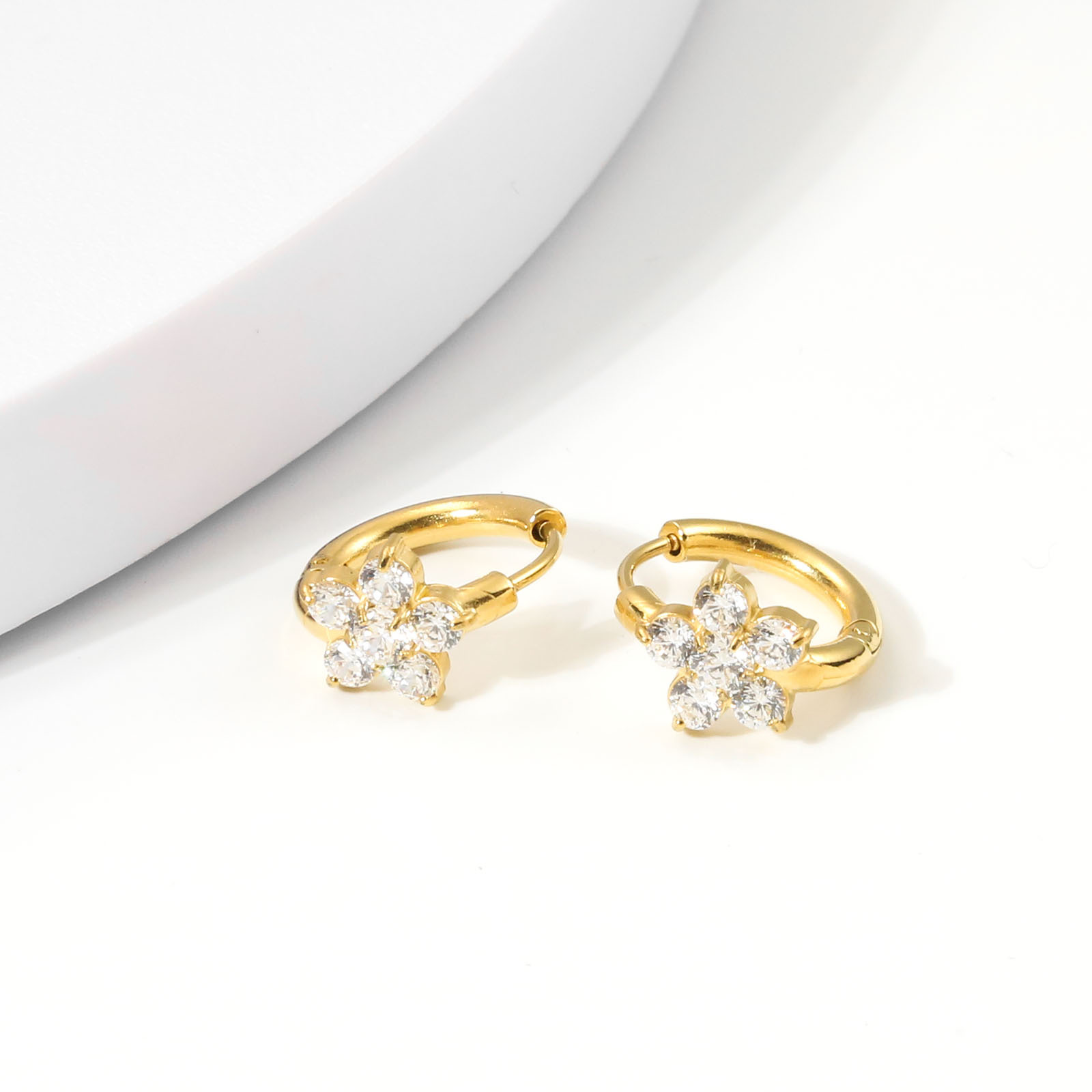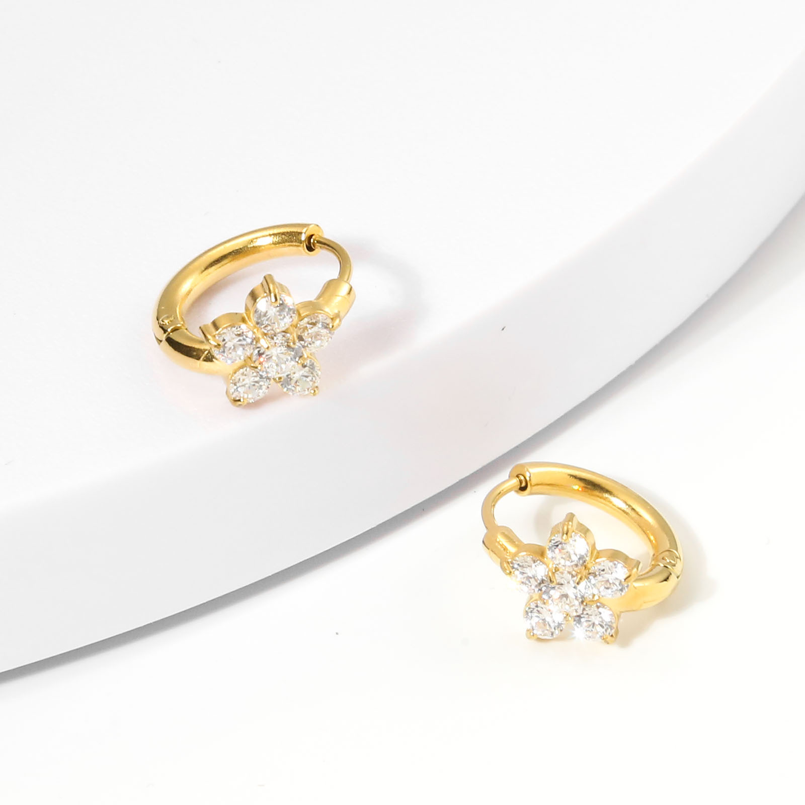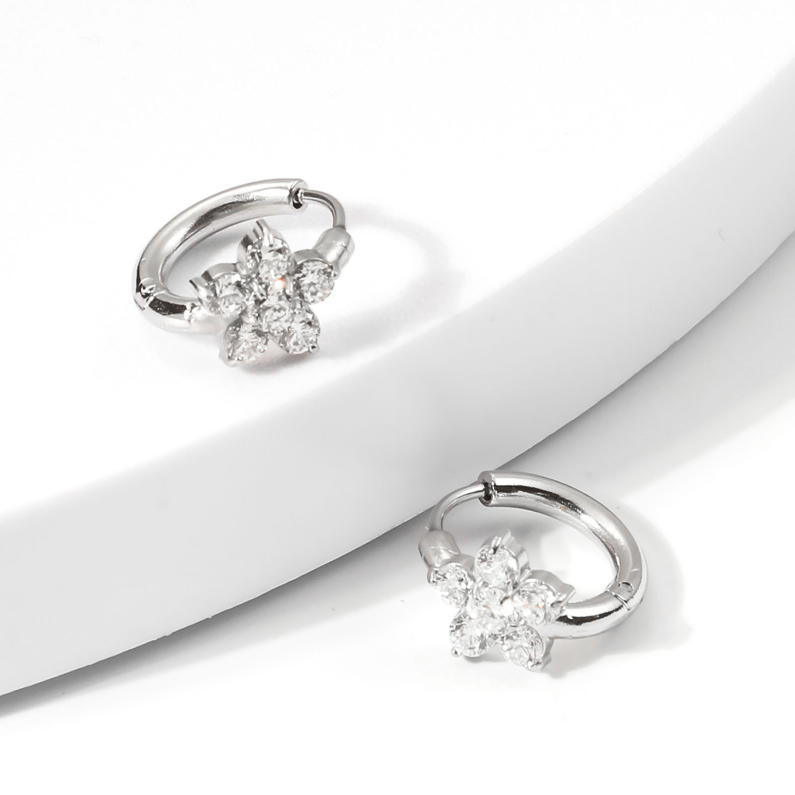 产品名称:SDA新款Ins风不锈钢花朵锆石耳圈 女士精致韩流时尚耳环