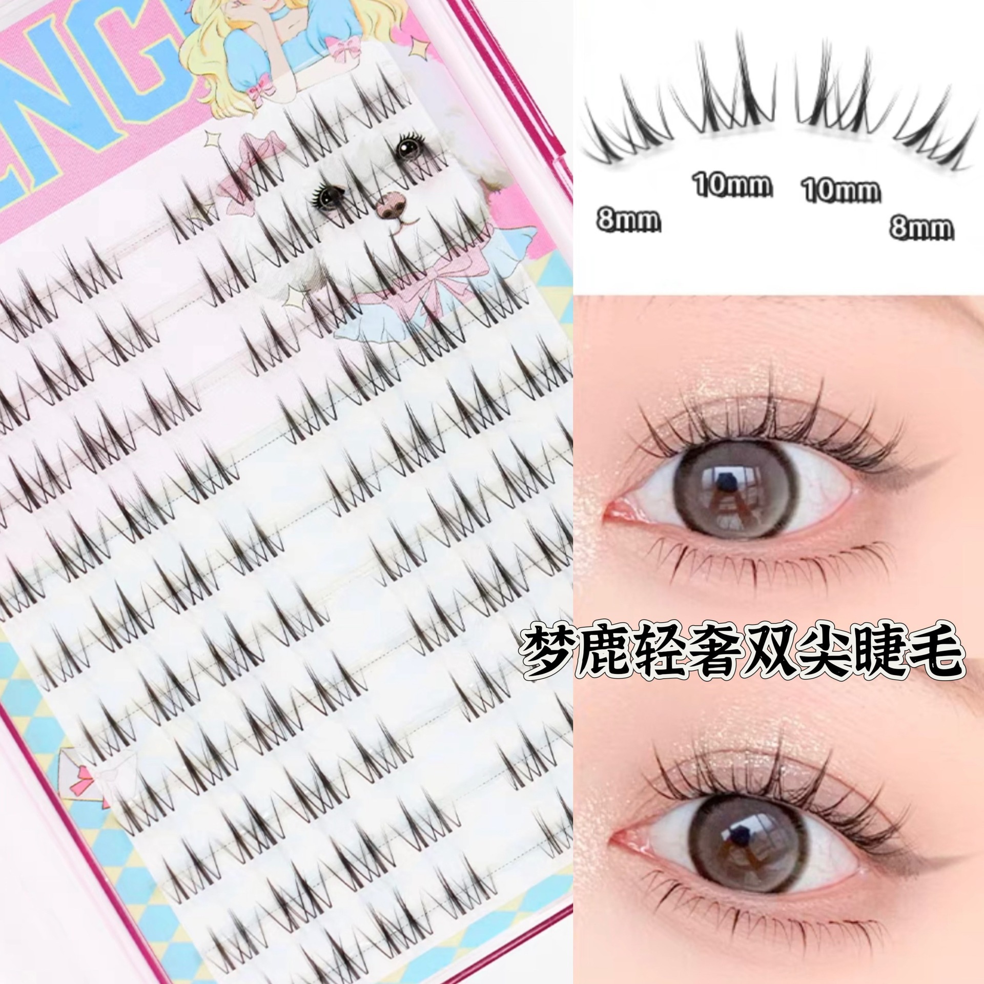 梦鹿女主角/轻奢双尖/清欢假睫毛超自然浓密化妆师专用新手单簇