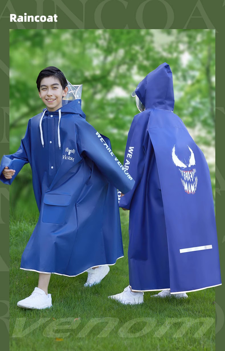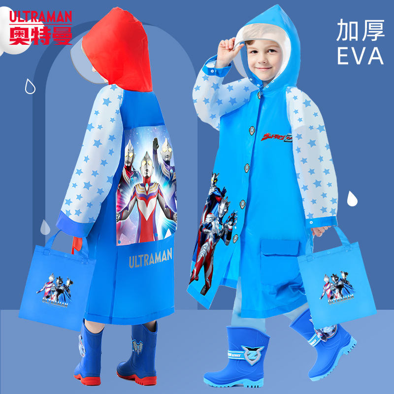 ウルトラマン子供用レインコート新製品 EVA 隠しバックル大型スイングオールインワンスクールバッグレインコートフード付き保護通気性
