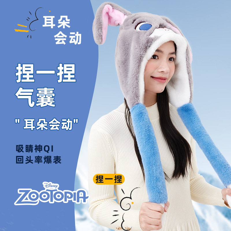 正規認定ジュディぬいぐるみ帽子 女の子用 冬用ぬいぐるみ学生帽子 耳が動く耳当て付き帽子 赤ちゃん用 大人用