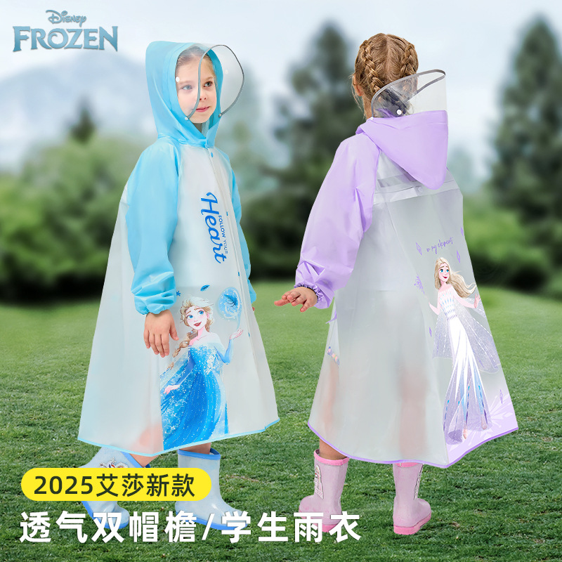 儿童雨衣新款双帽檐拉链款雨披艾莎公主可爱幼儿园雨衣学生