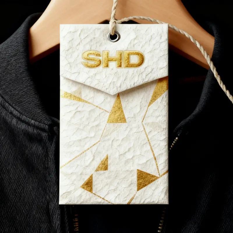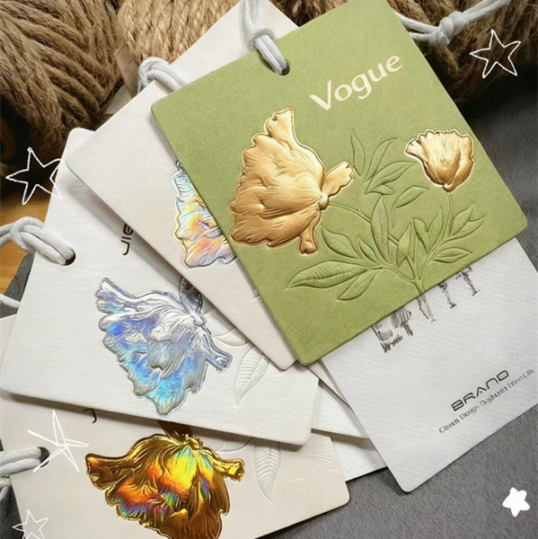艺术纸纹理纸吊牌定 制烫金logo原创素雅风女装吊卡设计