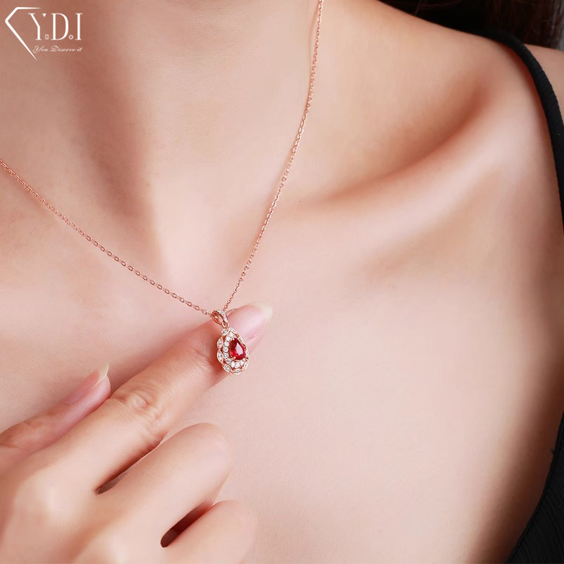 优帝児ジュエリーハトヘモグロビンルビーペンダント18k金モザイクルビーネックレス