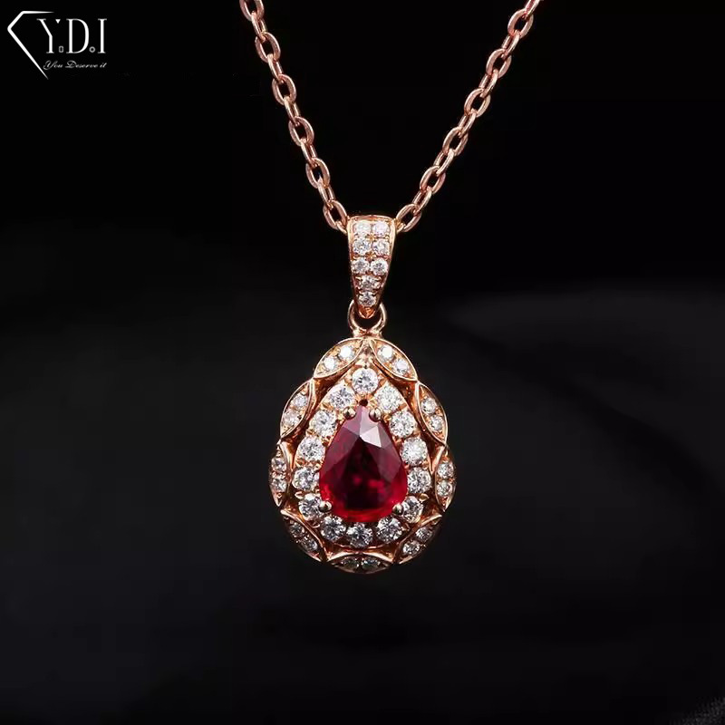 优帝児ジュエリー0.7カラットルビー18k金象眼ダイヤモンドペンダントモザンビーク赤彩宝ネックレス現在