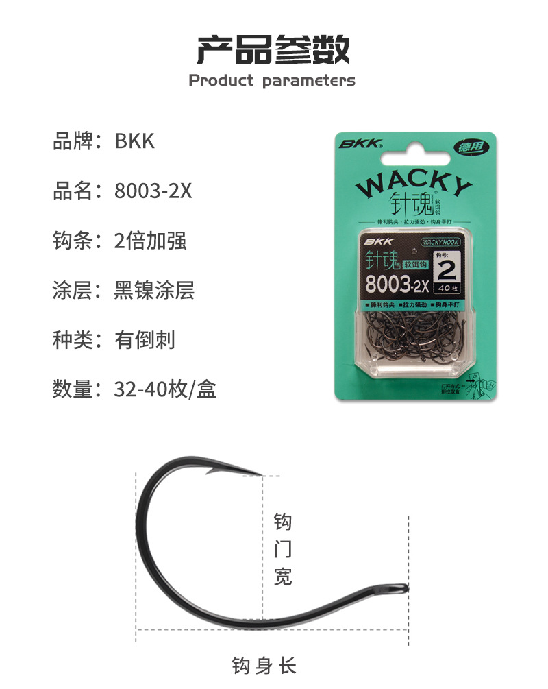 BKK倒钓钩针魂8003加强版2X大包装针魂wacky钩路亚钩黑坑鳜鱼鲈鱼