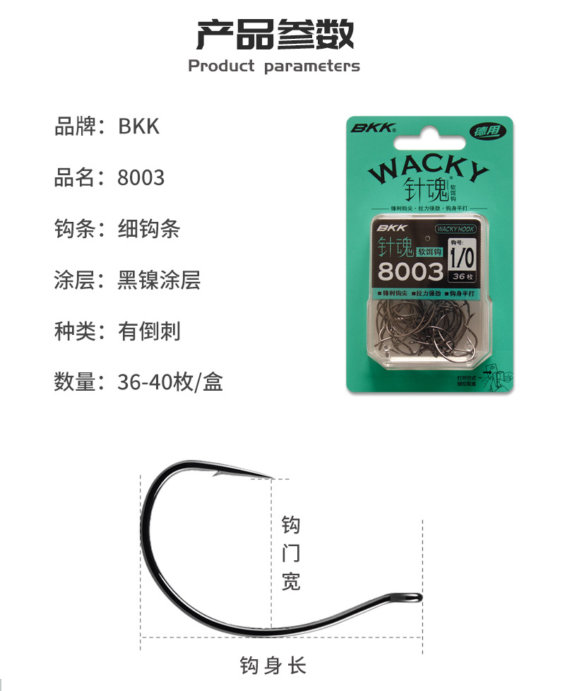 BKK软饵软虫钩假饵针魂8003倒钓钩Wacky钩路亚鲈鱼钩泥鳅钩野钓