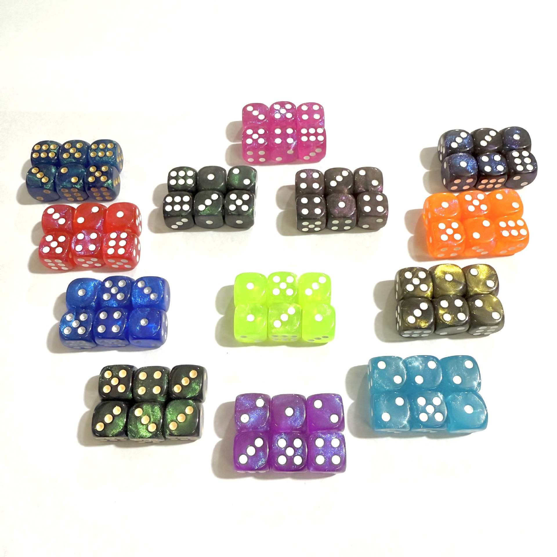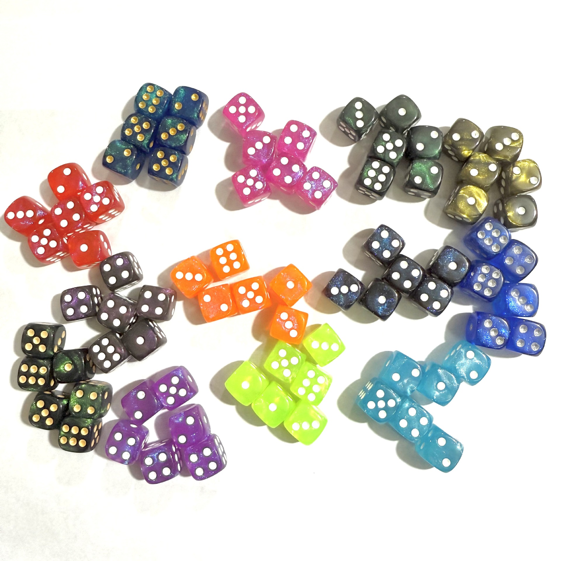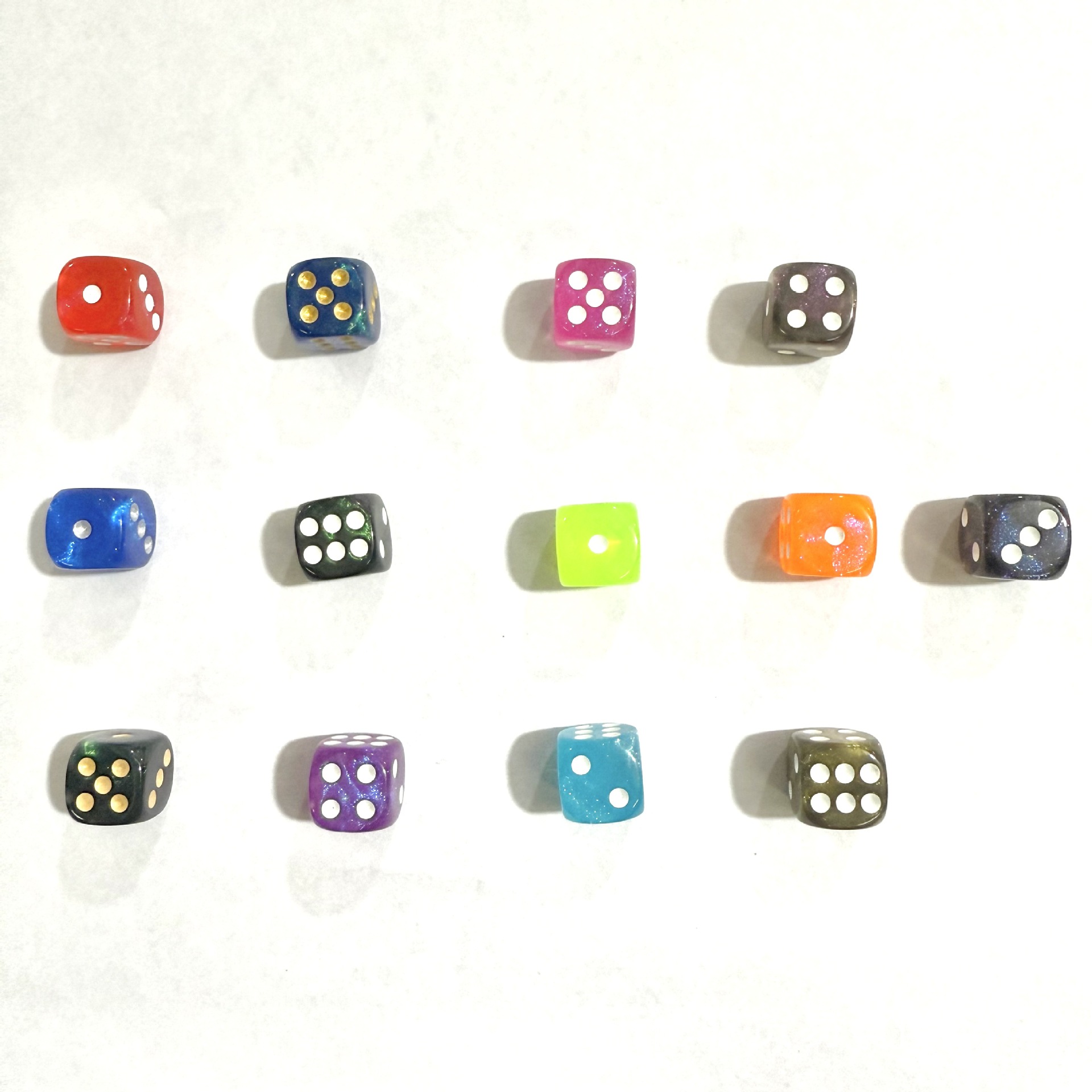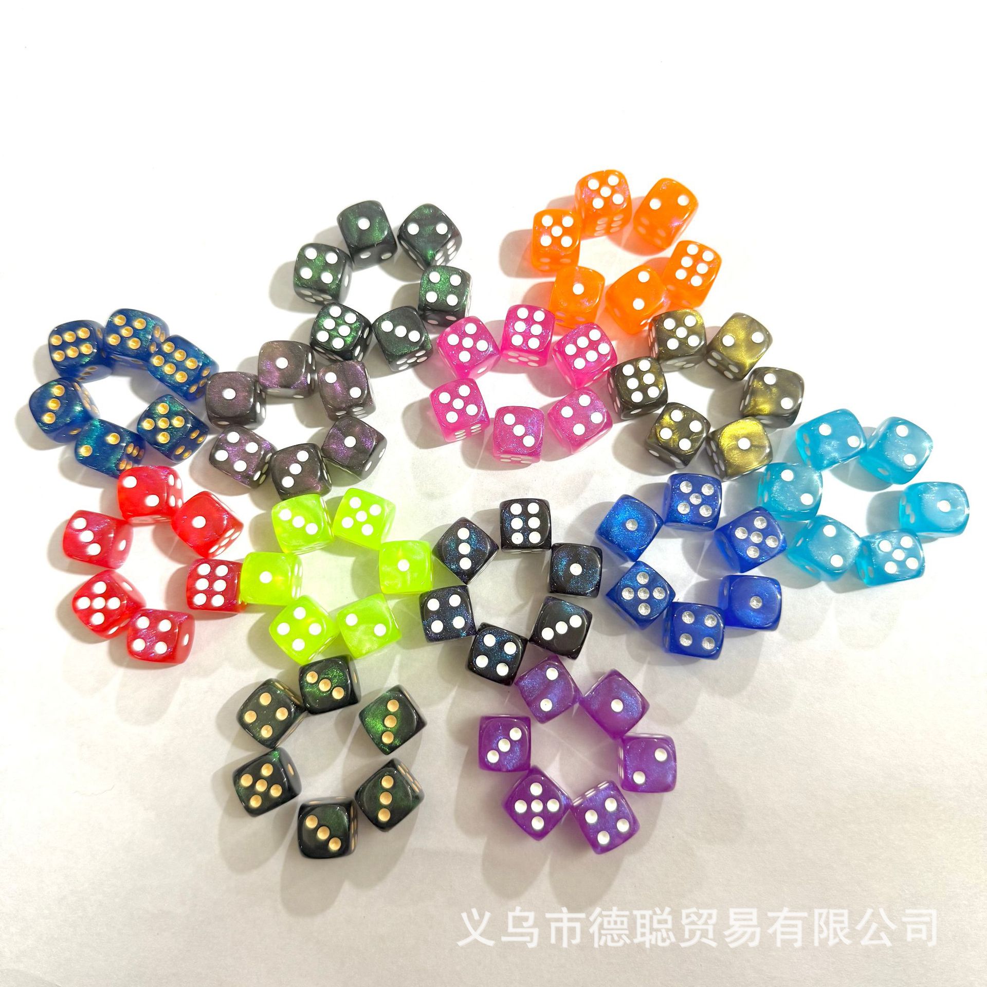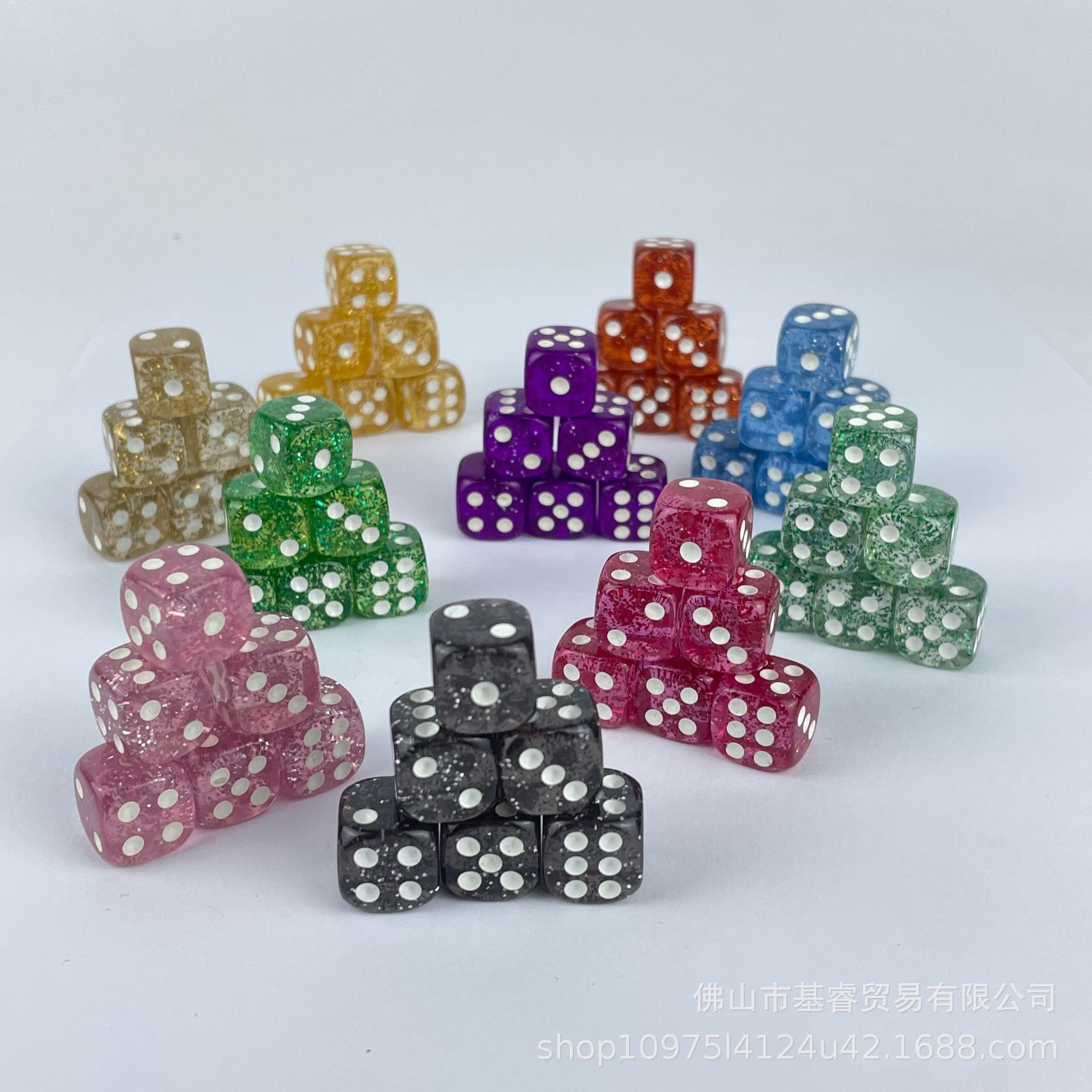 卸売り高品質アクリルカラー透明帯金葱粉サイコロ娯楽ゲームサイコロ12mmフラッシュサイコロ付き