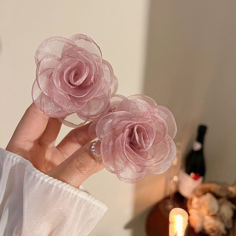 超仙網紗ツバキの花のヘアピンの女性側の前髪のヘアピンの甘い王女の頭のバラの小さいクリップの花