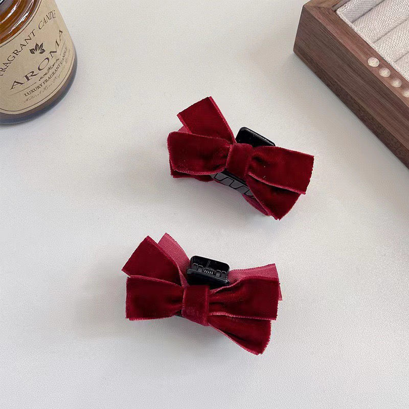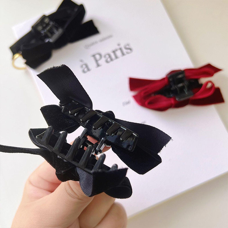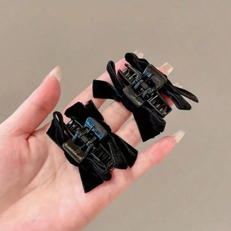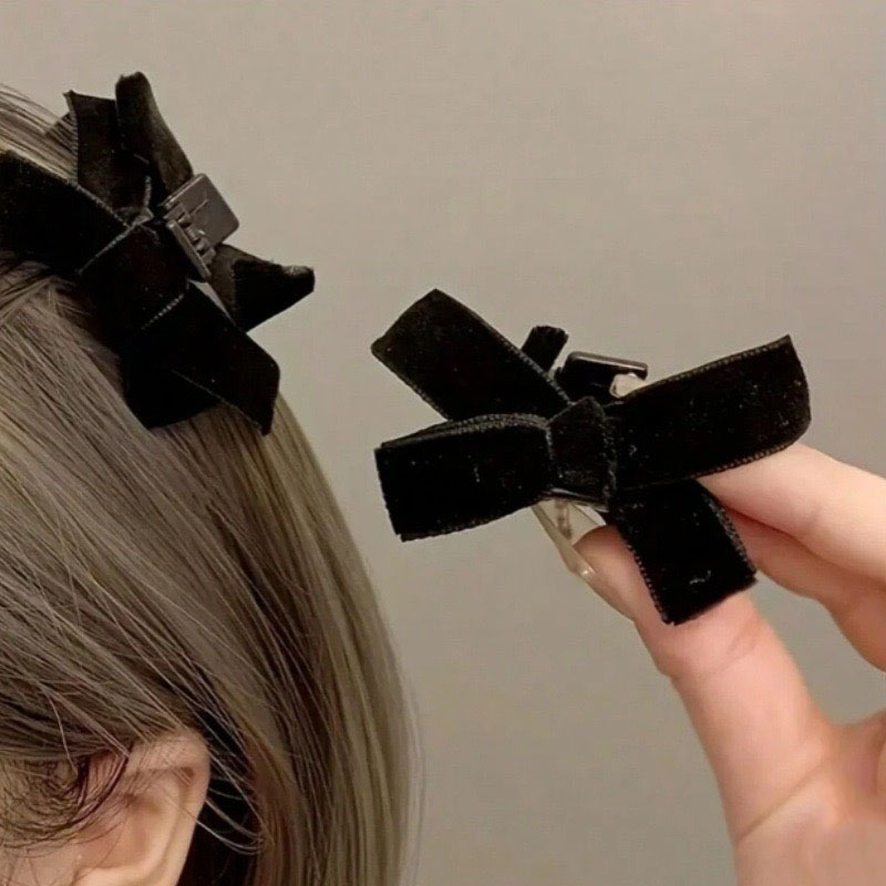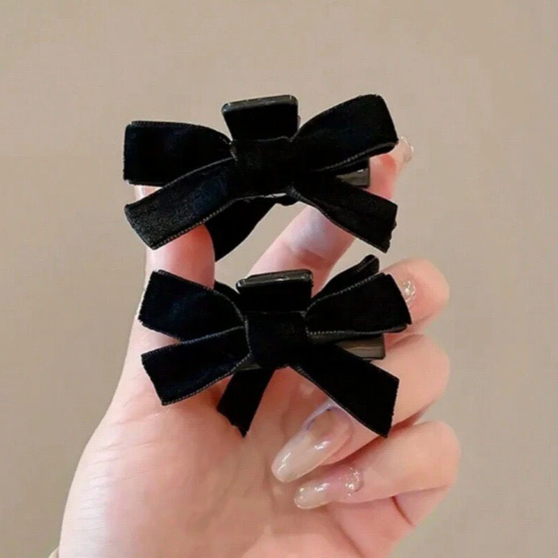 ベルベットリボンヘアピン黒ヘアピン小さな前髪クリップ額カモノハシクリップサイドクリップ頭飾り新年ヘアアクセサリー