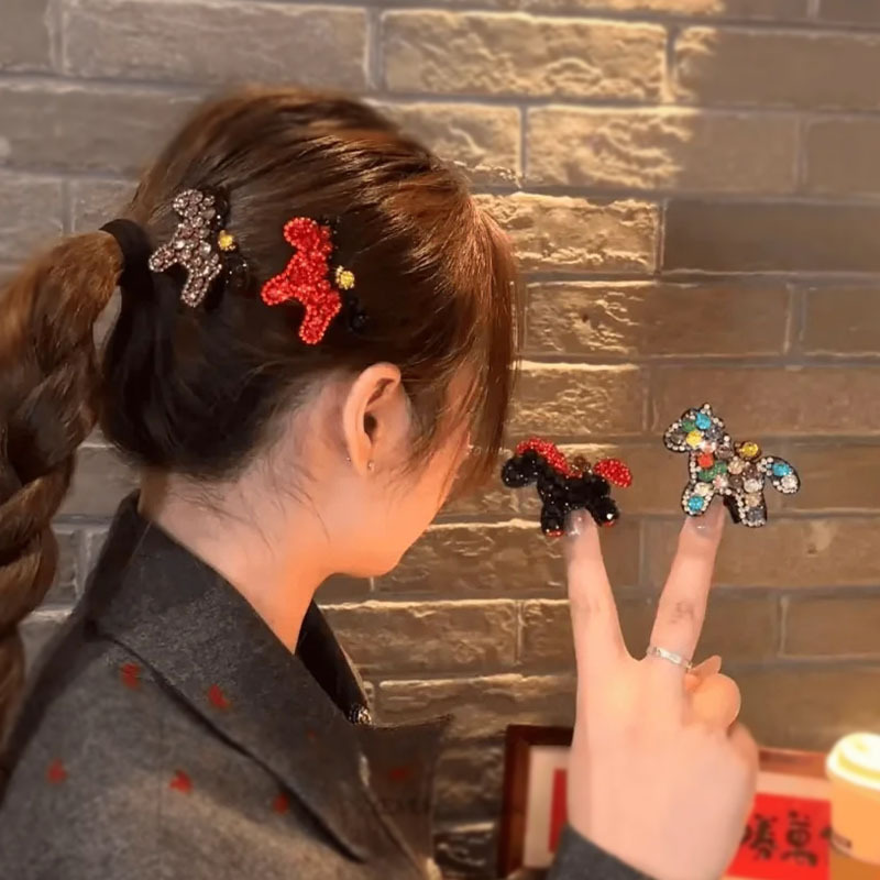 韩系彩钻小马发夹女新年氛围感侧边夹马年本命年可爱创意百搭发饰