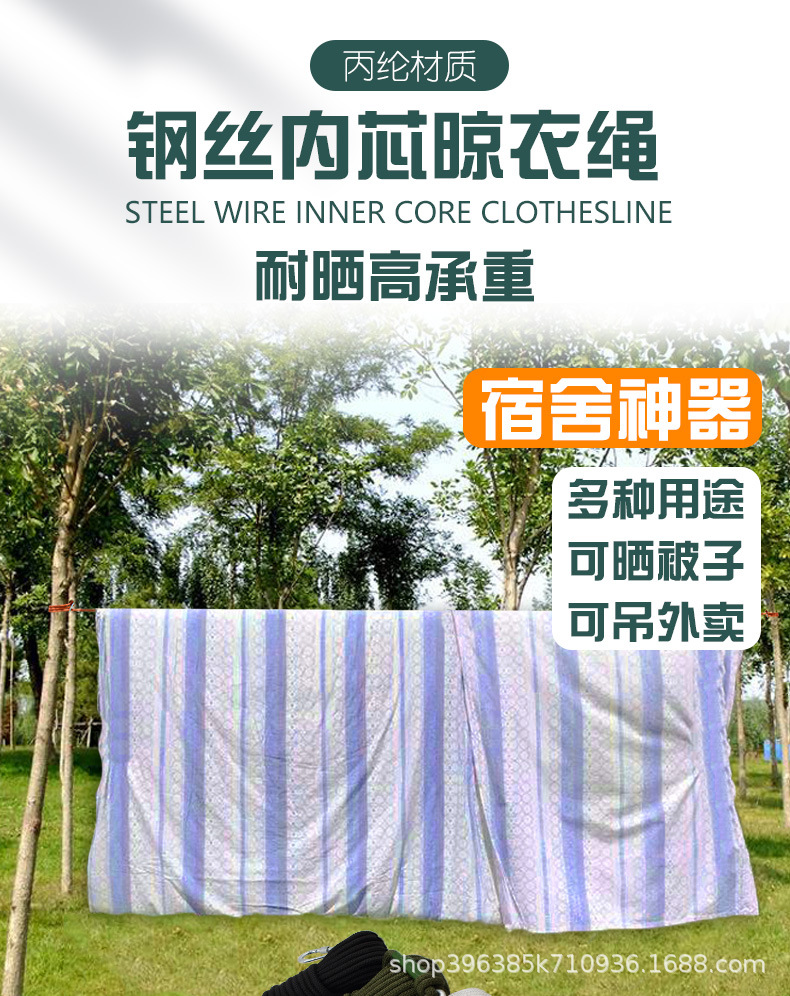 8mm太りワイヤー芯物干しロープナイロン干し布団滑り止め防風アウトドア干し衣類屋外干し
