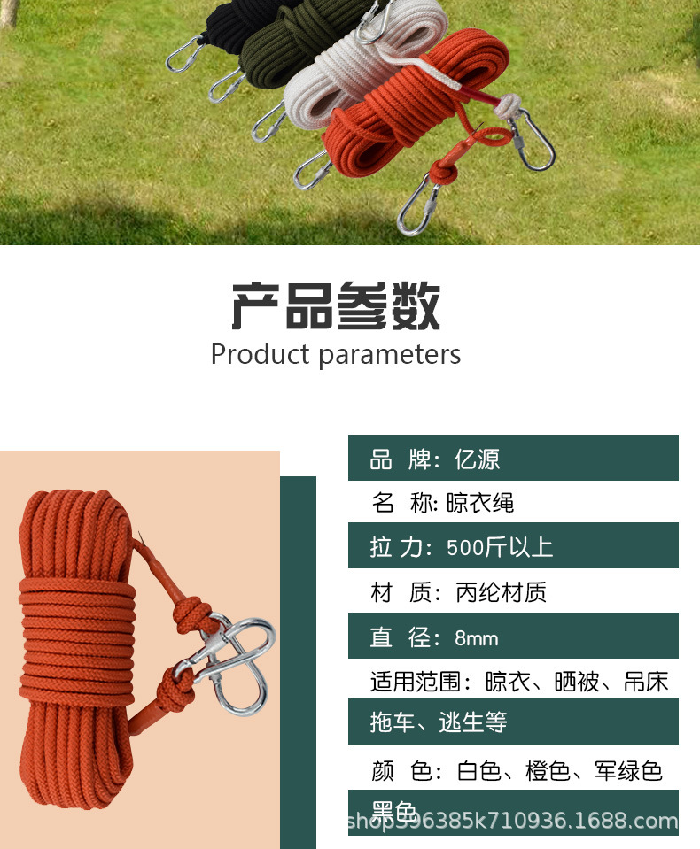 temu 物干しロープ太い鋼線コア屋外パンチフリーダブルフックナイロンロープ Amazon 越境供給