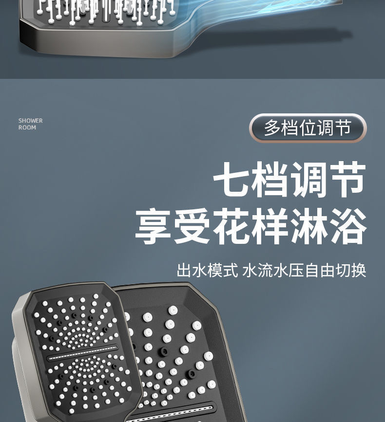正方形大型パネルシャワー ハンドヘルドトップスプレーヘッド 調整可能 新型 家庭用 ワンキー止水シャワー ユニバーサルセット