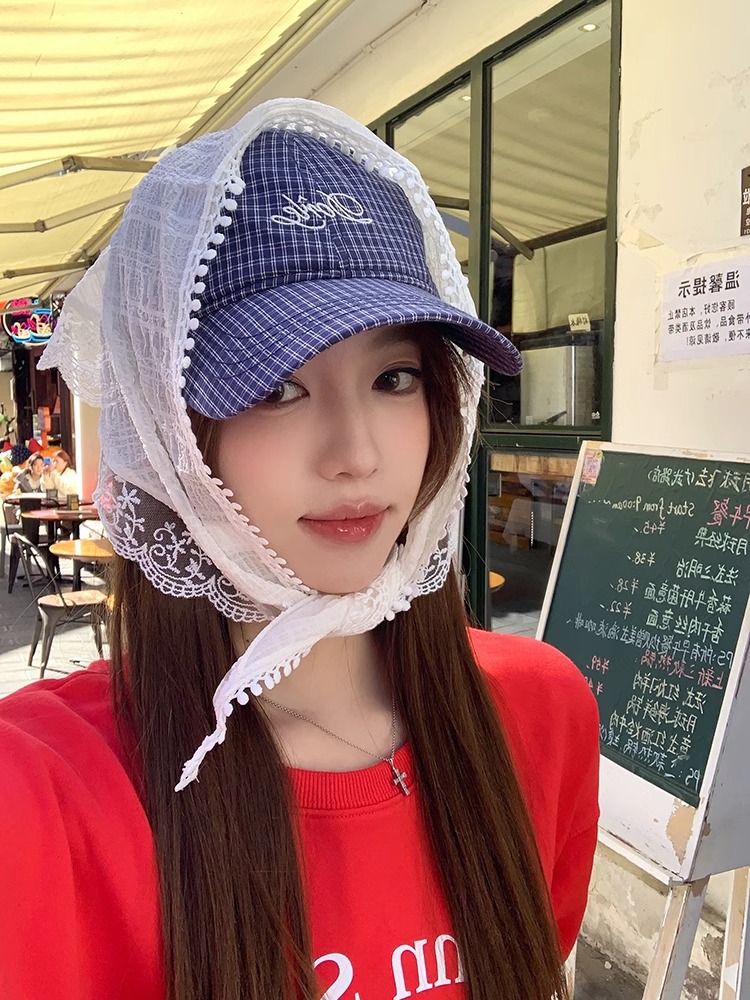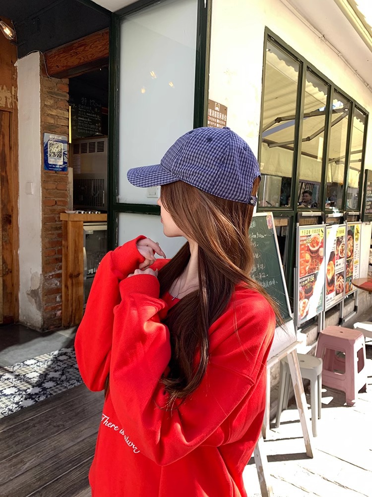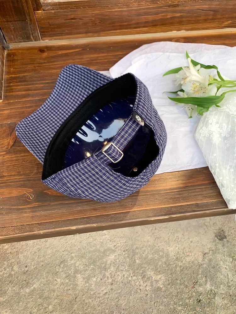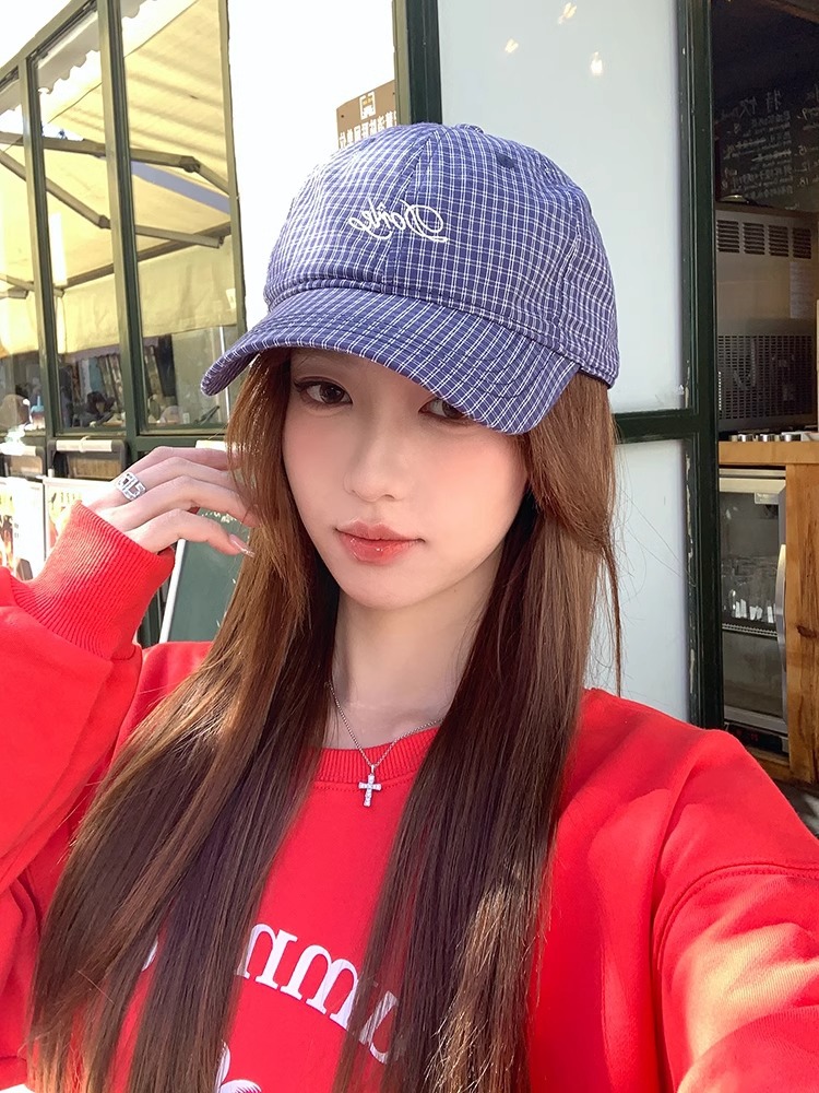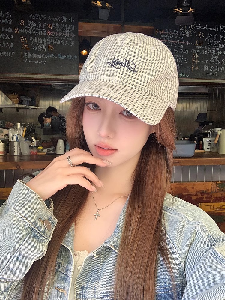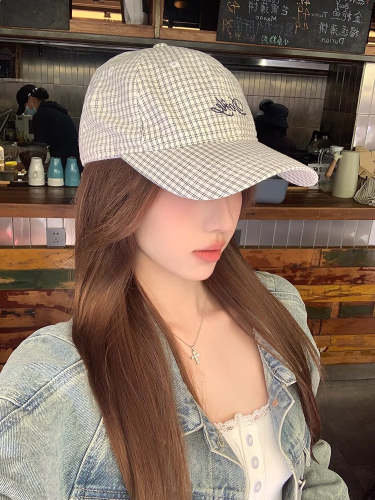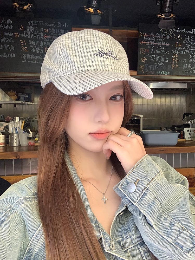2025早春の新型韓国系の小清新な格子縞のアヒルの舌の帽子の女性の広いつばは顔の小さい刺繍の柔らかいトップの野球の帽子を現します。