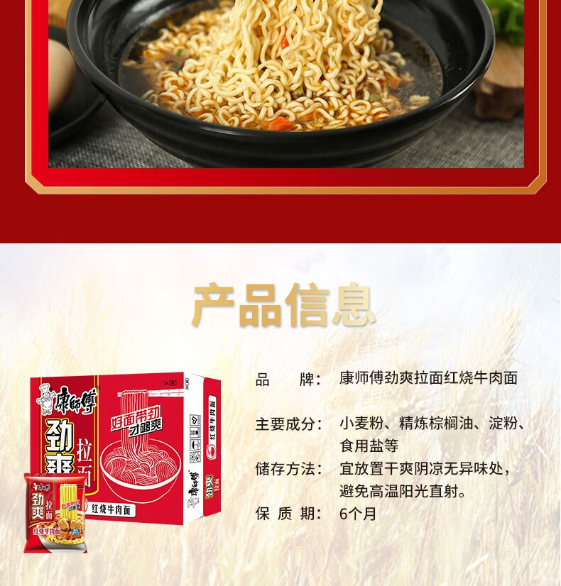 包郵便今麦郎一袋半インスタントラーメン24袋全箱赤焼牛肉麺夜食代食インスタントラーメン卸売り