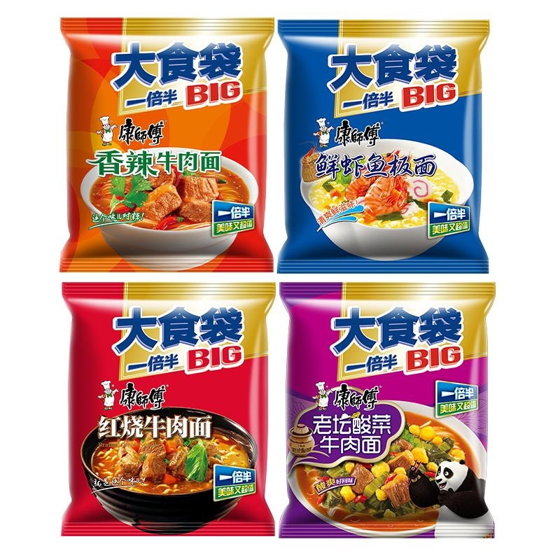 康師傅大食袋インスタントラーメン全箱24袋入りインスタントラーメン牛肉麺酸っぱい牛肉麺カップラーメン