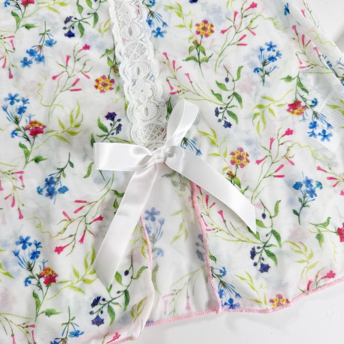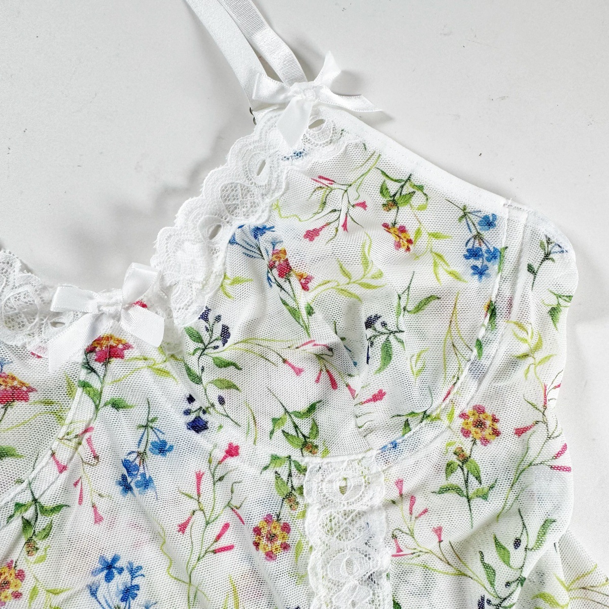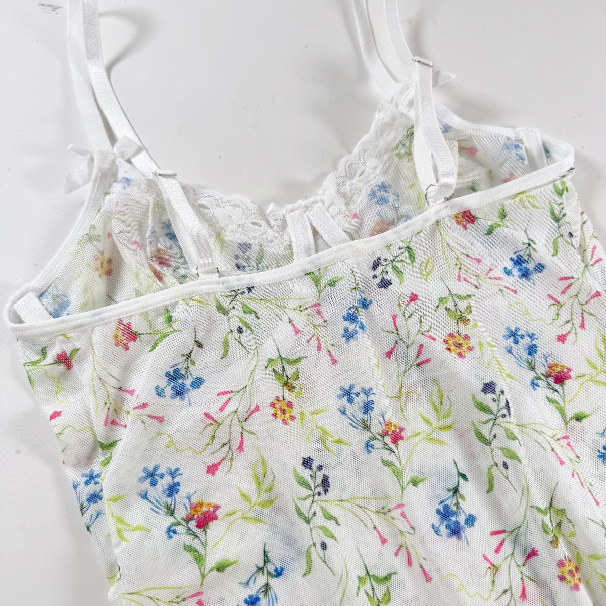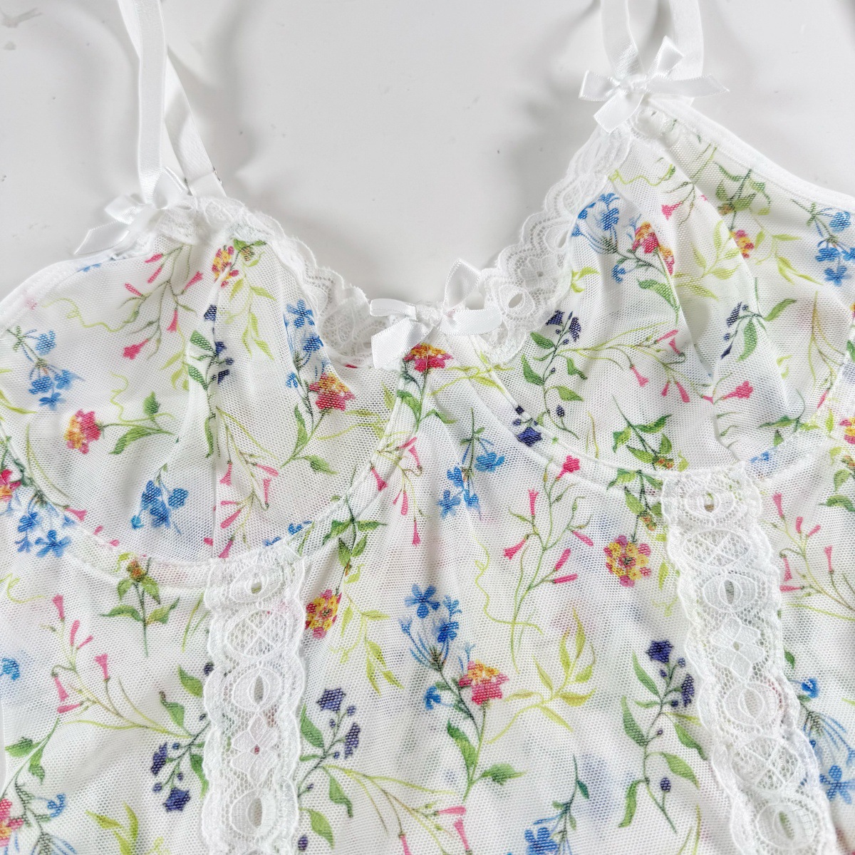 インスタで話題のナイトドレス 欧米風クロスボーダー販売 アリババ メッシュプリント ガーリー風小花柄 レース縁 パジャマ キュートで純粋な魅力