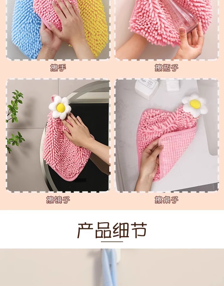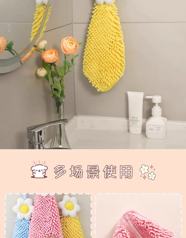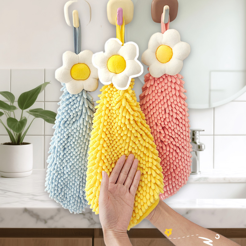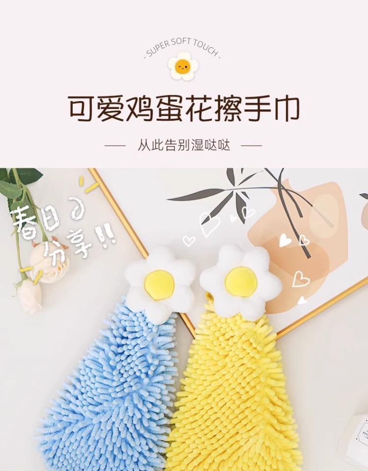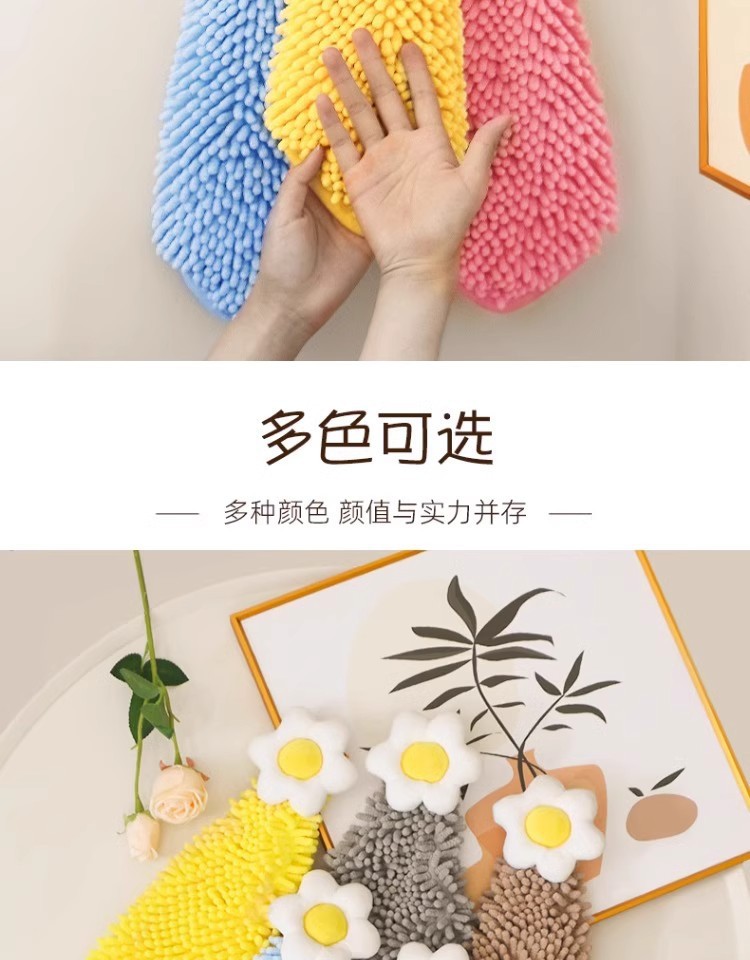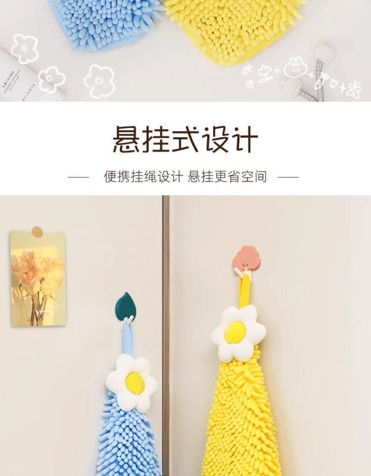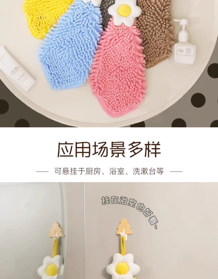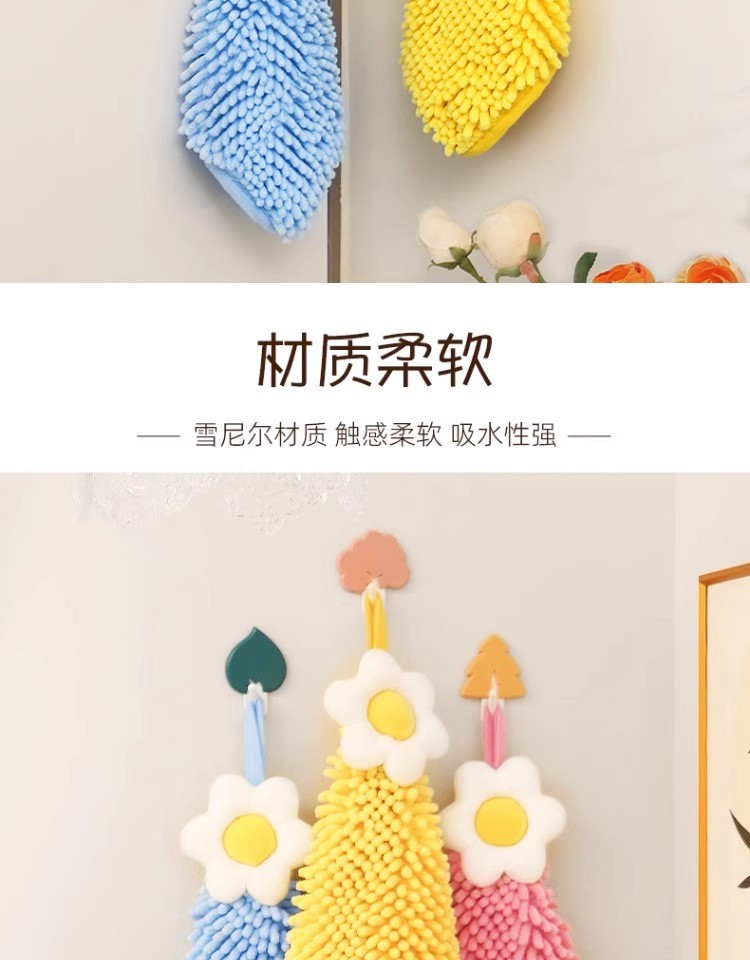 厂家鸡蛋花花朵可挂式雪尼尔擦手巾厨房浴室家用儿童创意擦手毛巾