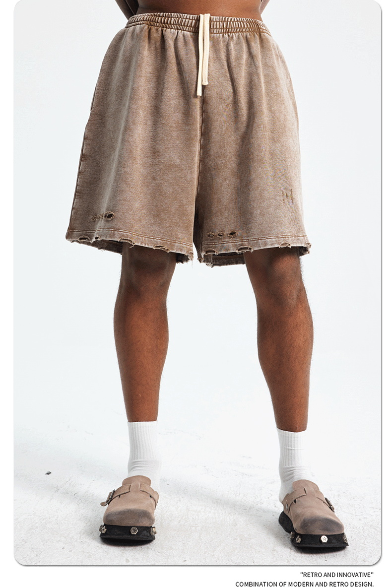 ARTIE 紳士服丨2025 爆発バティックウォッシュヘビーウェイト 420 グラムダメージ加工メンズショーツヨーロッパとアメリカのレトロミッドパンツ男性用