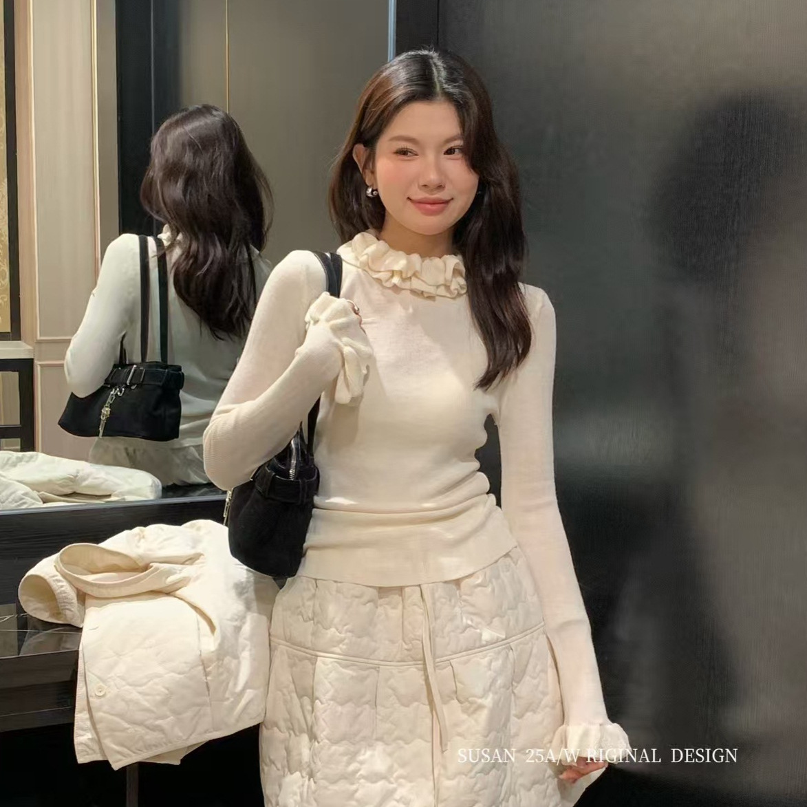 苏珊 2025新款法式木耳花边领针织打底衫冬修身叠穿内搭上衣972S