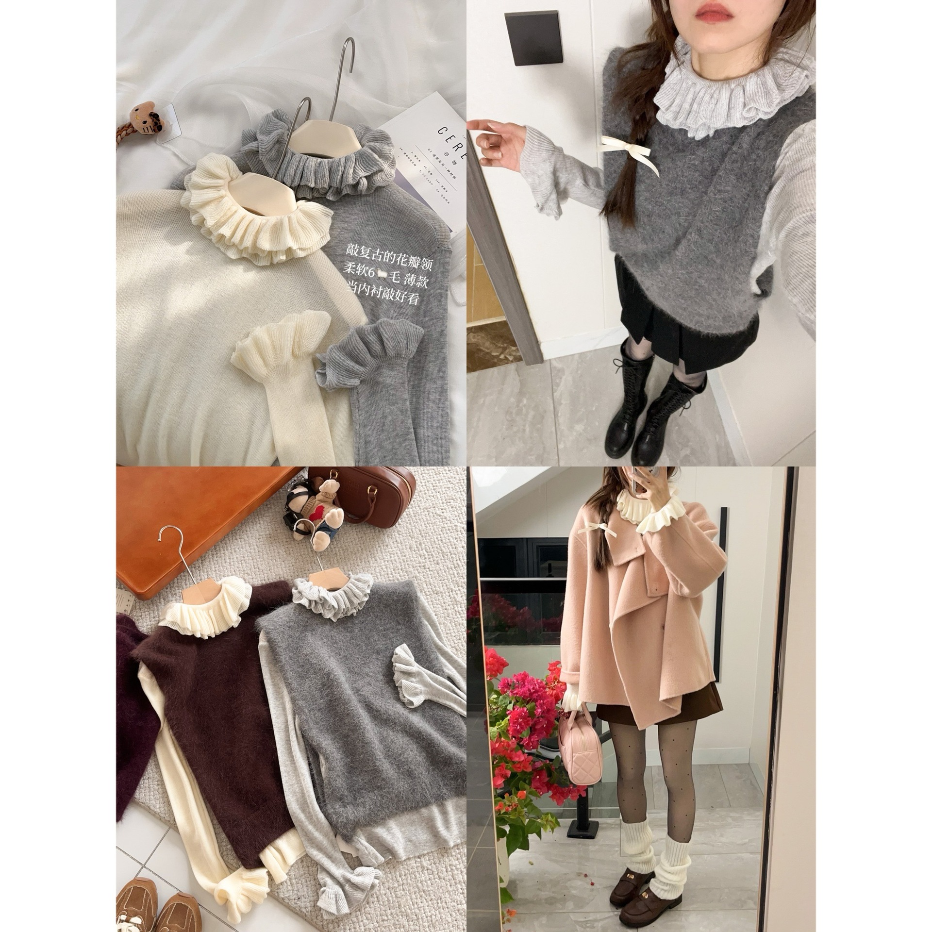 2025年早秋气质女装欧货荷叶花边领毛针织打底衫高级感内搭上衣冬