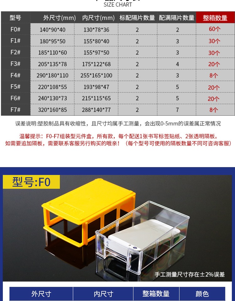 イエロー F0 イエローシェル 140*90*40,ブルー F0 ブルーシェル 140*90*40,ダークブラウン F0 ブラウンシェル 140×90×40,グレー F0 グレーシェル 140*90*40,新しい F1 イエローシェル 180*95*50 外形寸法,新しい F1 ブルーシェル 180*95*50 外形寸法,新しい F1 ブラウンシェル 180*95*50 外形寸法,新しい F1 グレーシェル 180*95*50 外形寸法,新しい F2 イエローシェル 185*110*60 外形寸法,新しい F2 ブルーシェル 185*110*60 外形寸法,新しい F2 ブラウンシェル 185*110*60 外形寸法,新しい F2 グレーシェル 185*110*60 外形寸法,新しい F3 イエローシェル 205*135*78 外形寸法,新しい F3 ブルーシェル 205*135*78 外形寸法,新しい F3 ブラウンシェル 205*135*78 外形寸法,新しい F3 グレーシェル 205*135*78 外形寸法,F4 (イエロー、ブルー、グレー、ブラウン) 290*180*110 色の備考はデフォルトで青です,新しい F5 イエローシェル 220*108*55 外形寸法,新しい F5 ブルーシェル 220*108*55 外形寸法,新しい F5 ブラウンシェル 220*108*55 外形寸法,新しい F5 グレーシェル 220*108*55 外形寸法,新しい F6 イエローシェル 240*130*73 外形寸法,新しい F6 ブルーシェル 240*130*73 外形寸法,新しい F6 ブラウンシェル 240*130*73 外形寸法,新しい F6 グレーシェル 240*130*73 外形寸法,F7 (イエロー、ブルー、グレー、ブラウン) 320*160*85 色の備考はデフォルトで青です