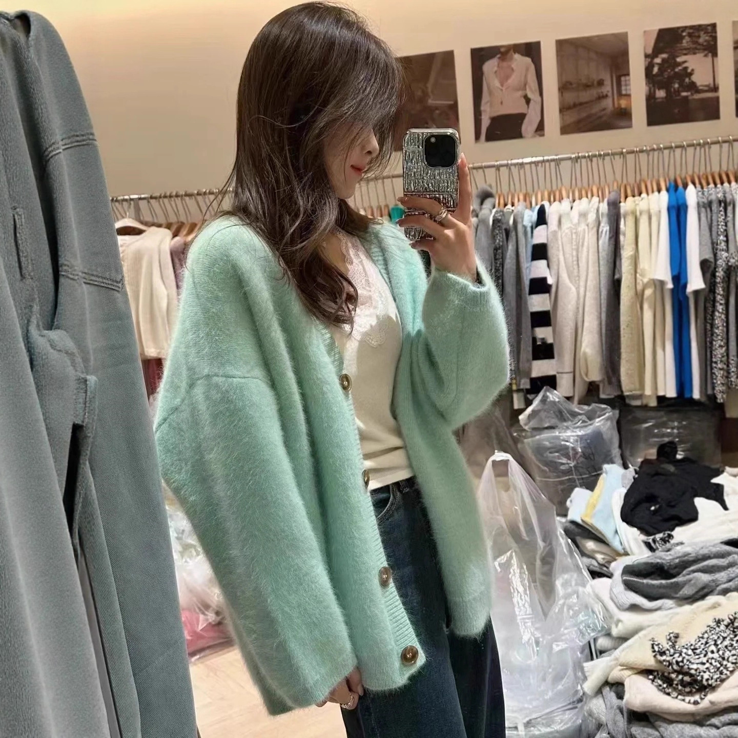 韩国东大门毛衣秋季新款貂绒针织开衫女宽松加厚貂毛慵懒外套上衣