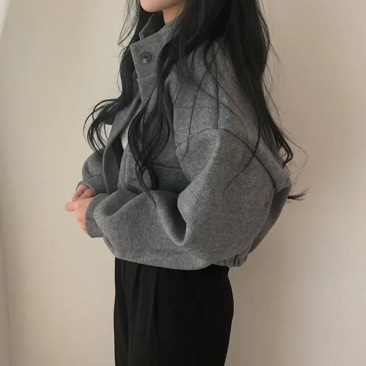 韓国東大門chi春秋レトロ小衆ゆるいカジュアルな長袖の短い毛のカーディガンのコートの女性