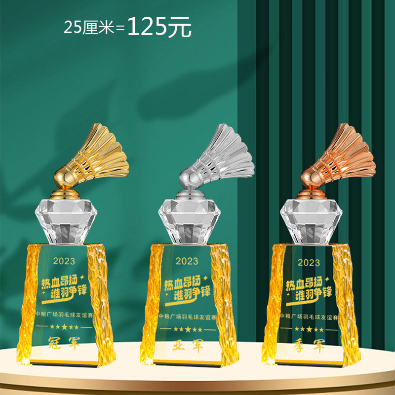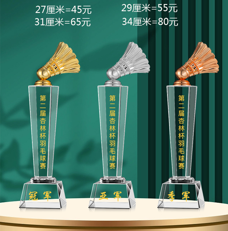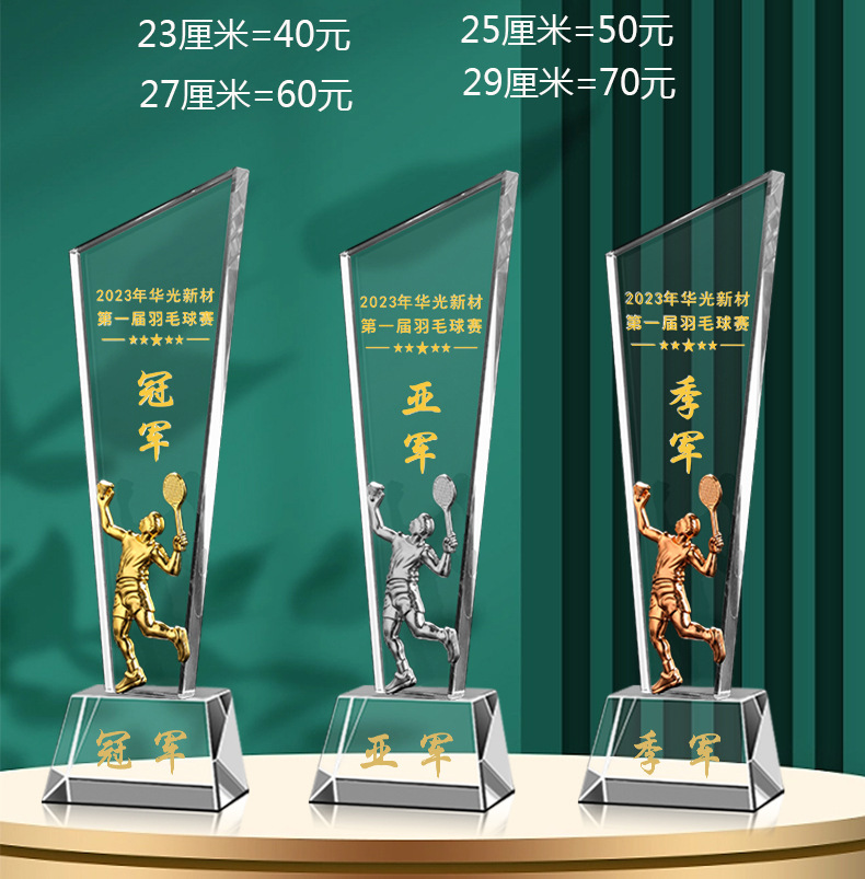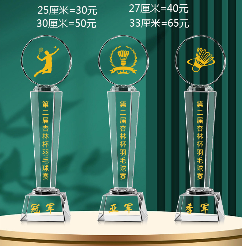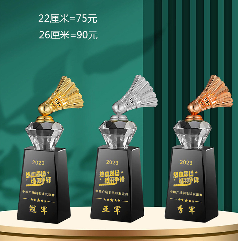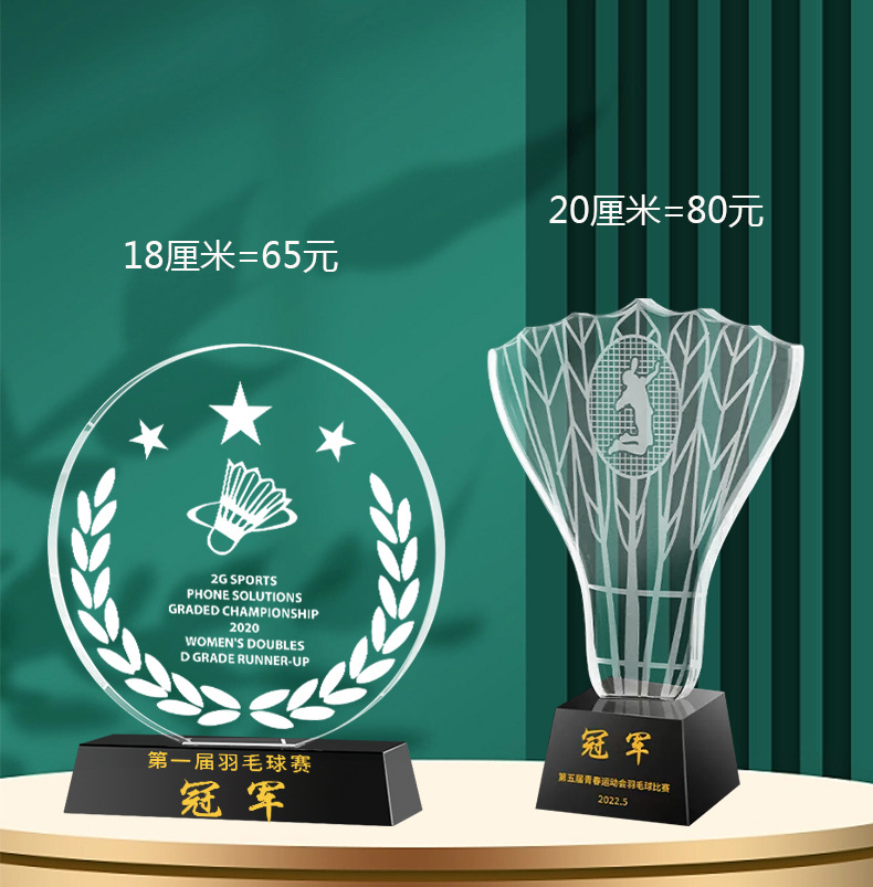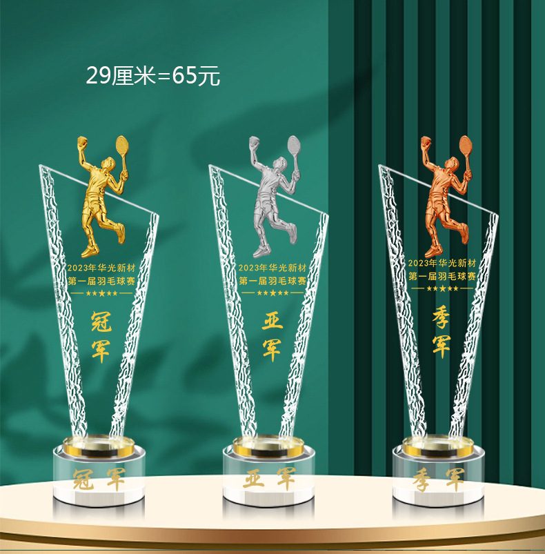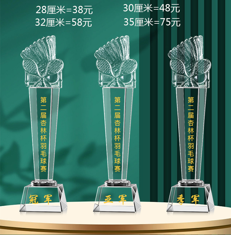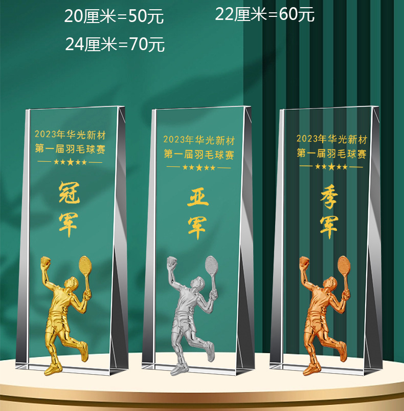 バドミントン競技水晶トロフィー樹脂スポーツ大会優勝シングルスダブルス賞品記念彫刻亜季