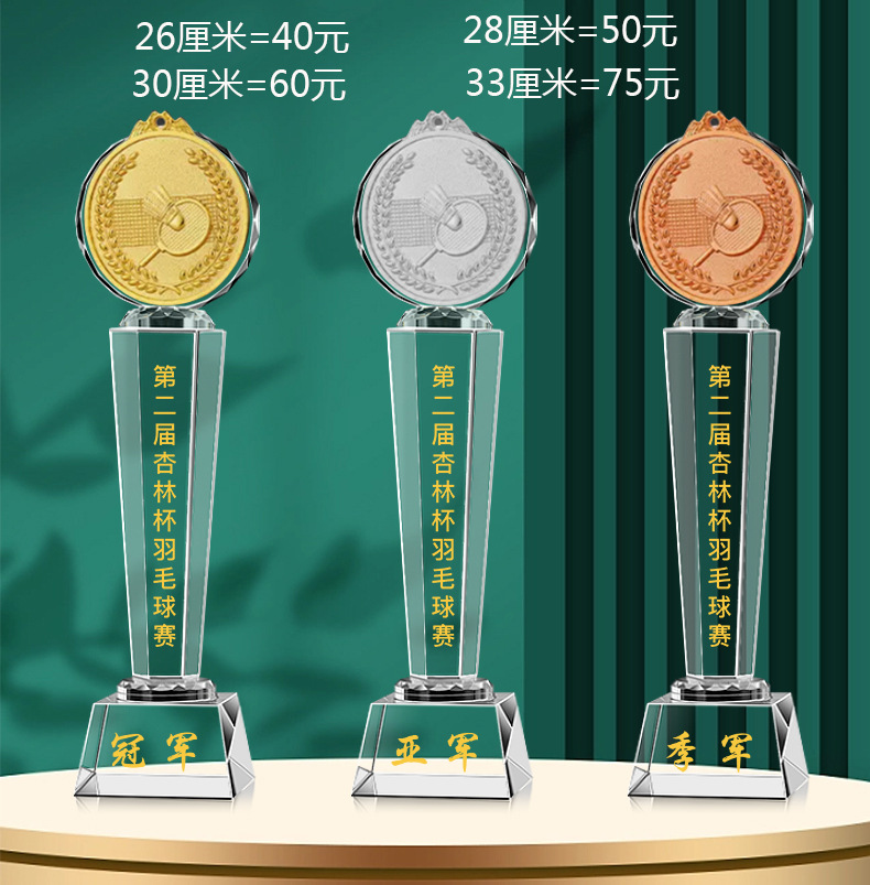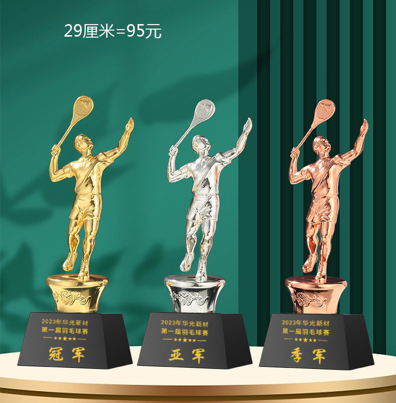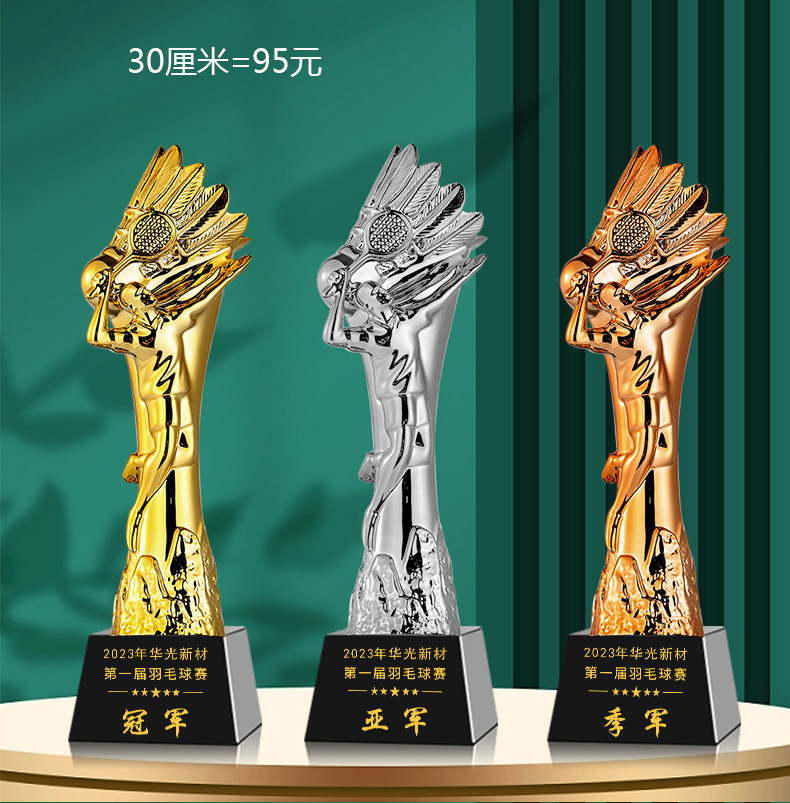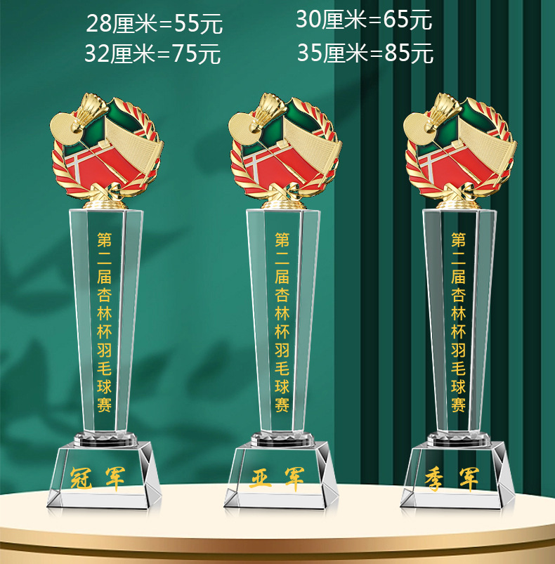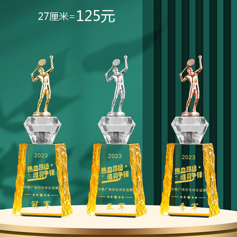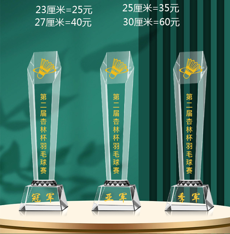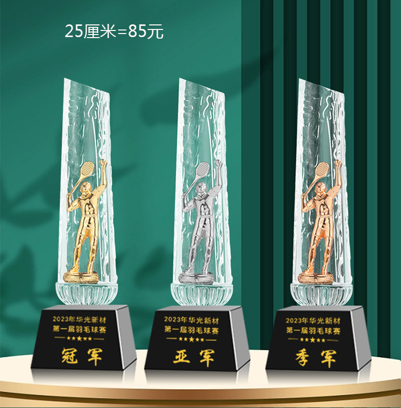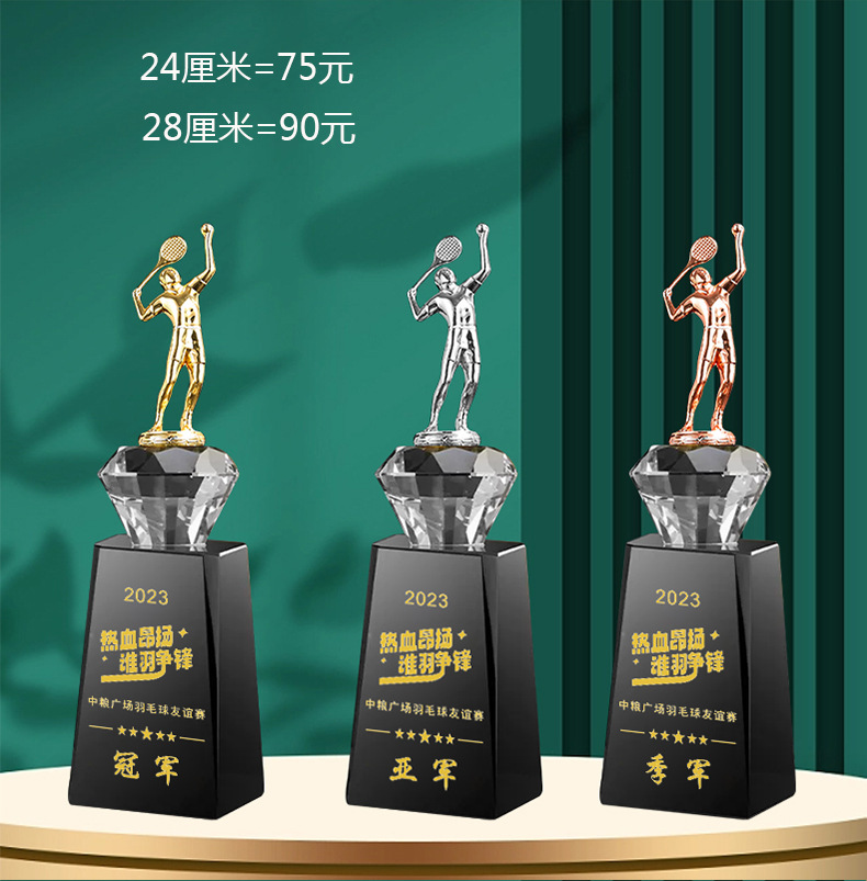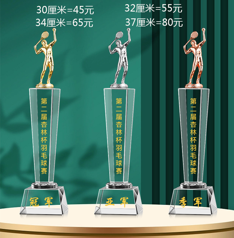 バドミントン競技水晶トロフィー樹脂スポーツ大会優勝シングルスダブルス賞品記念彫刻亜季