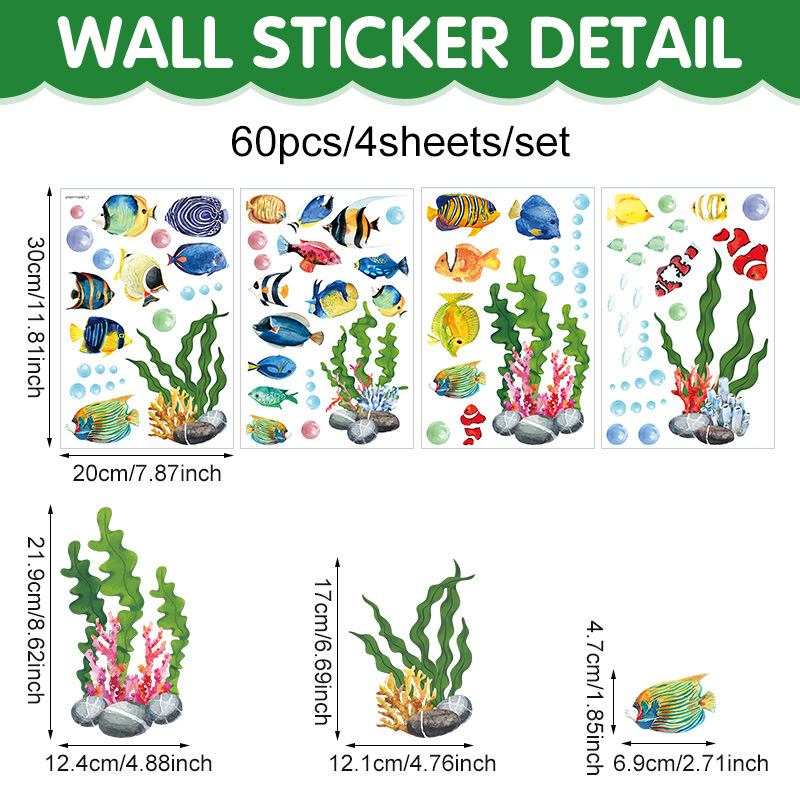 クロスボーダー海洋動物ウォールステッカー家の装飾子供部屋幼稚園自己粘着漫画水中生物ウォールステッカー