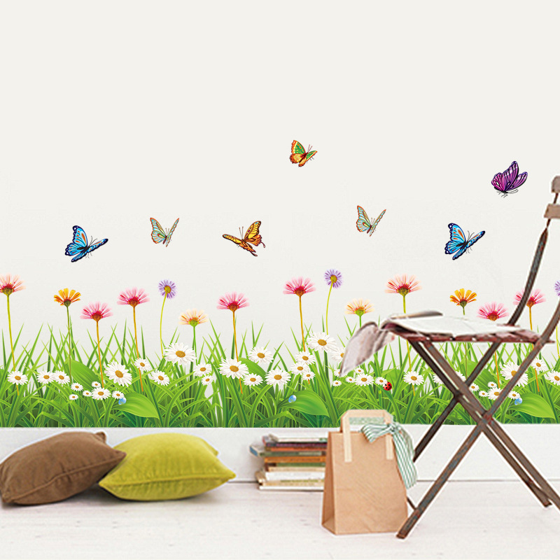 デイジーの花のベースボード寝室リビングルームベースボードウォールステッカーアイルリビングルーム寝室の壁のコーナー装飾