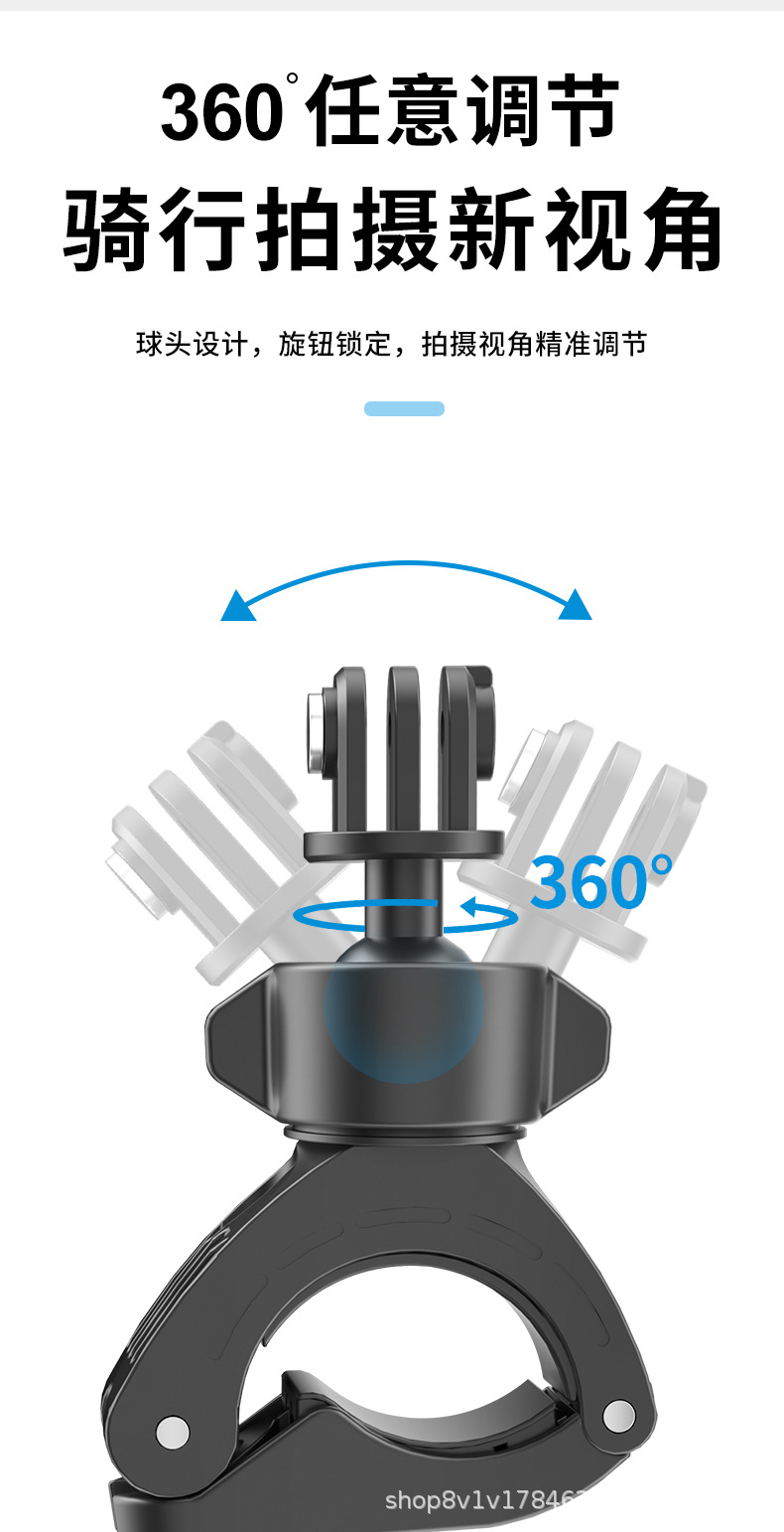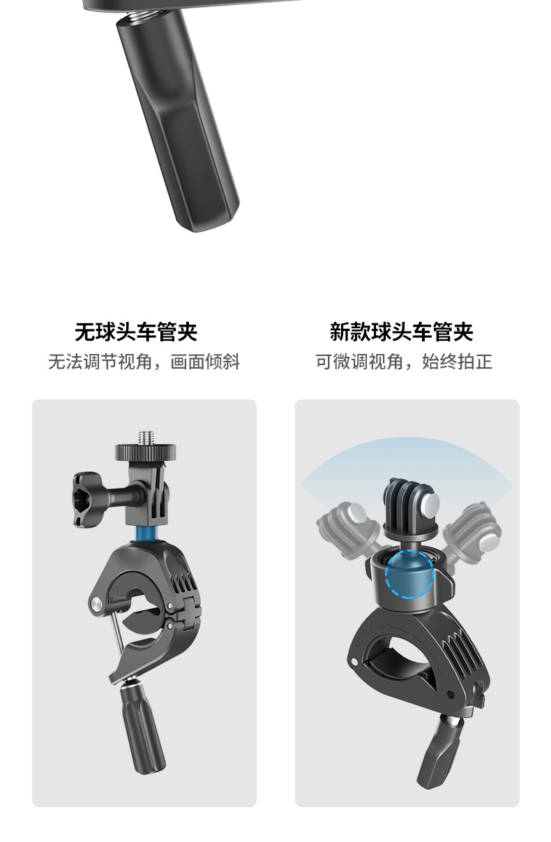 4.将要使用的设备接入单车夹顶部GoPro转接头(1/4转接头设备须加三脚架转接头)处,用受力螺丝拧紧并调整设备位置。