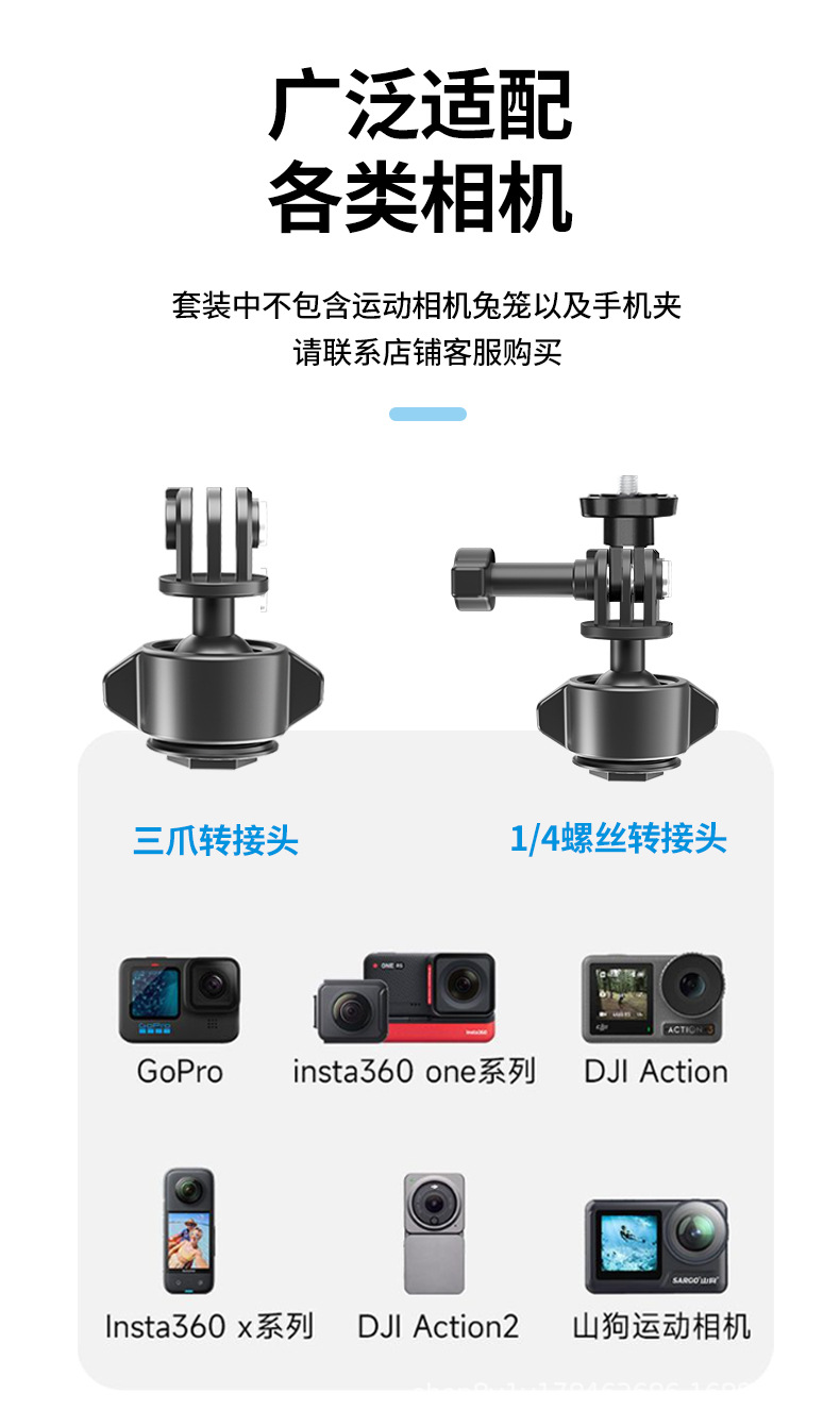 一: 本产品可兼容GoPro/DJI action/Insta360/SJCAM/AKASO等所有运动相机。