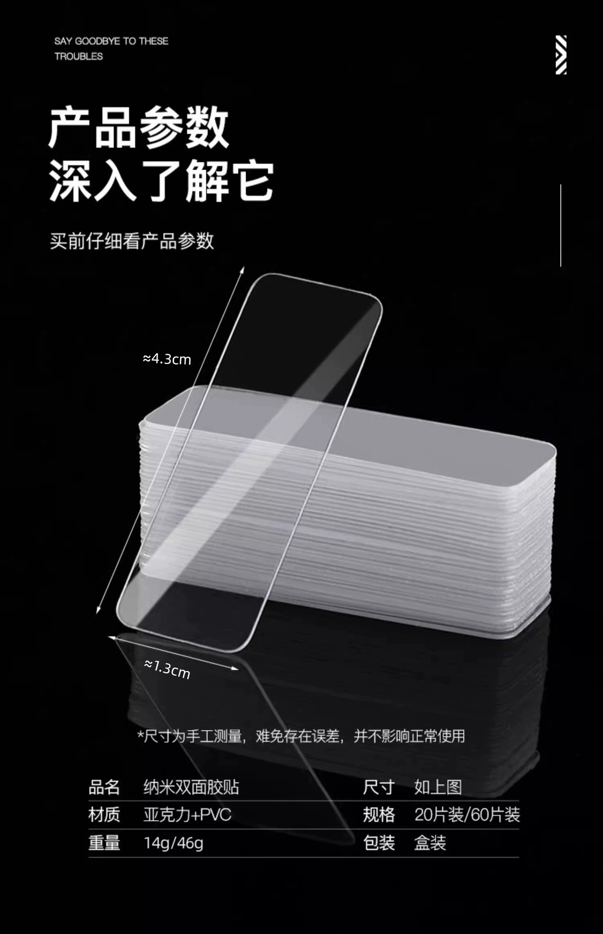 无痕透明纳米双面贴高粘度不留痕胶强力贴固定贴胶防滑双面贴片