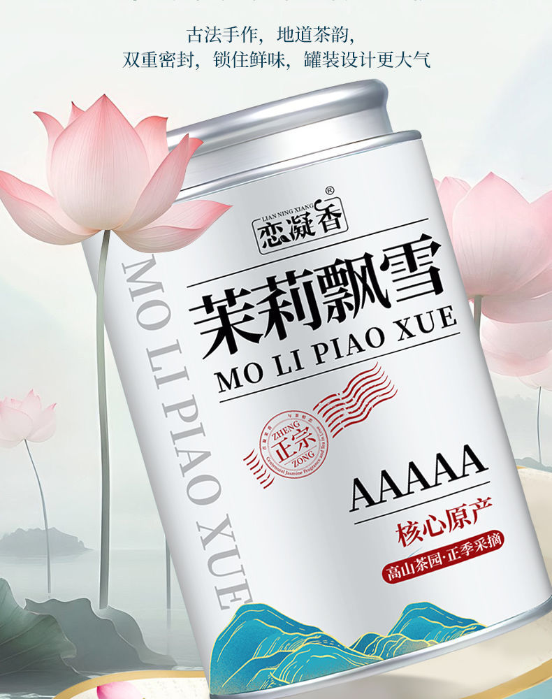 恋凝香茉莉漂雪特級茉莉花茶2024新茶葉高山濃香型若芽花茶葉缶