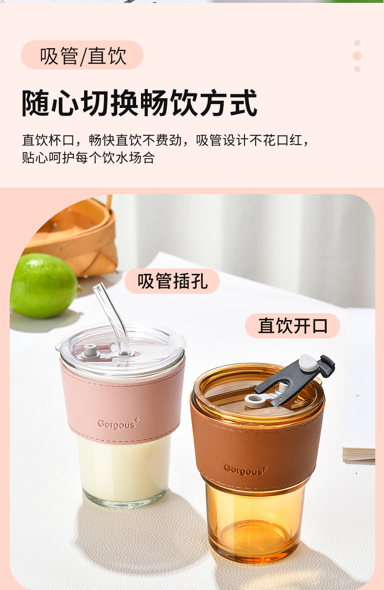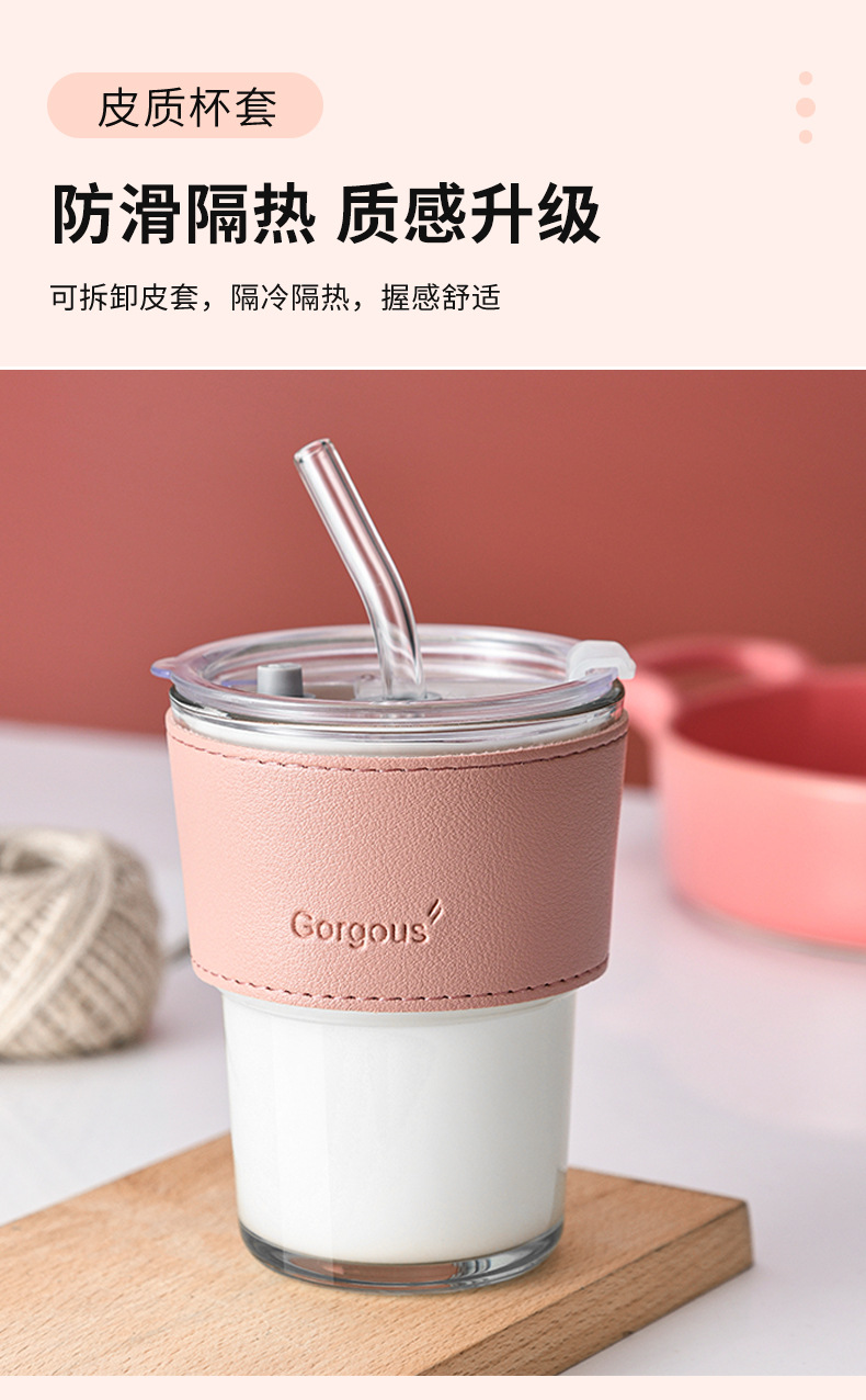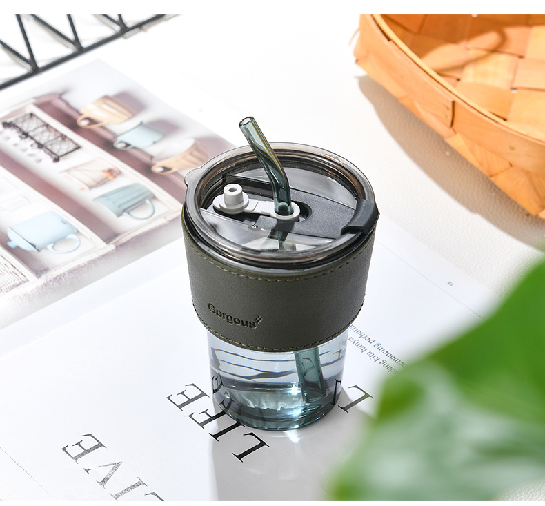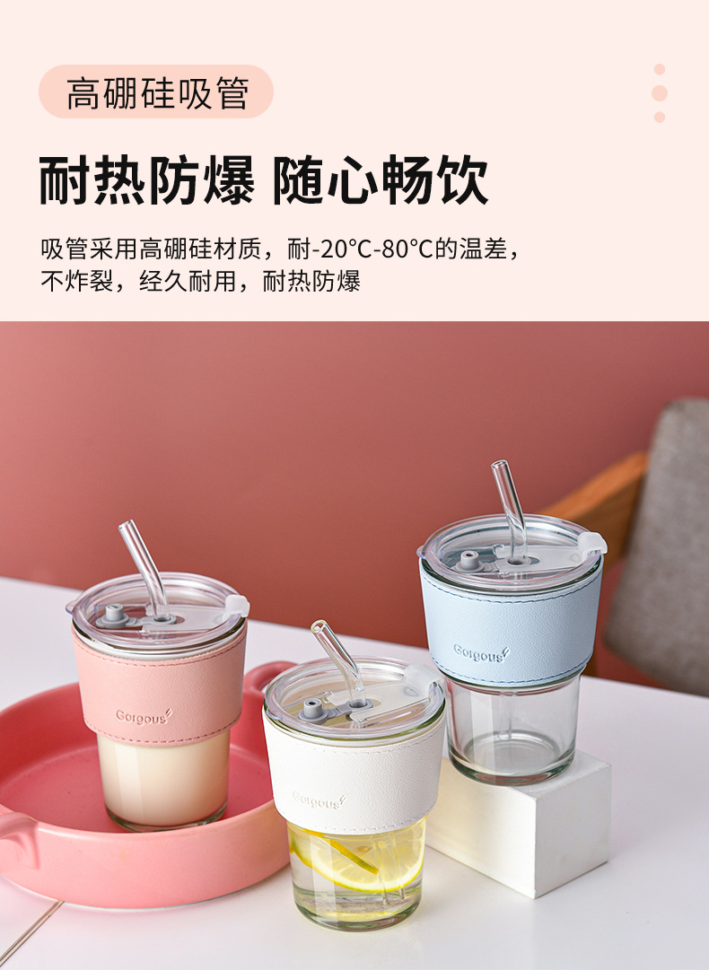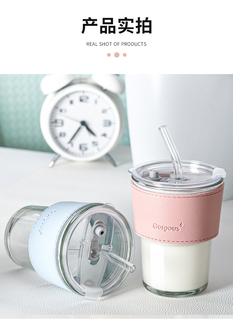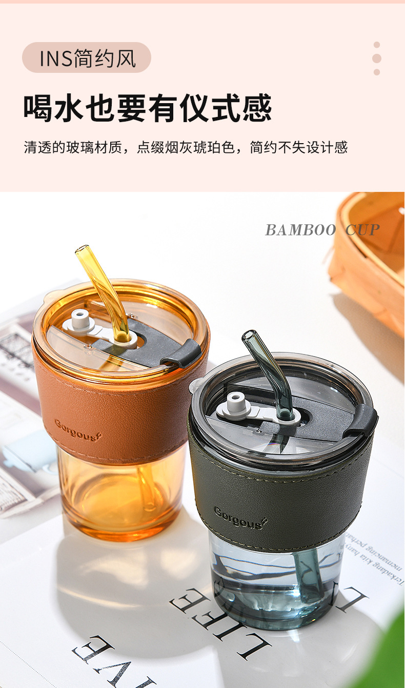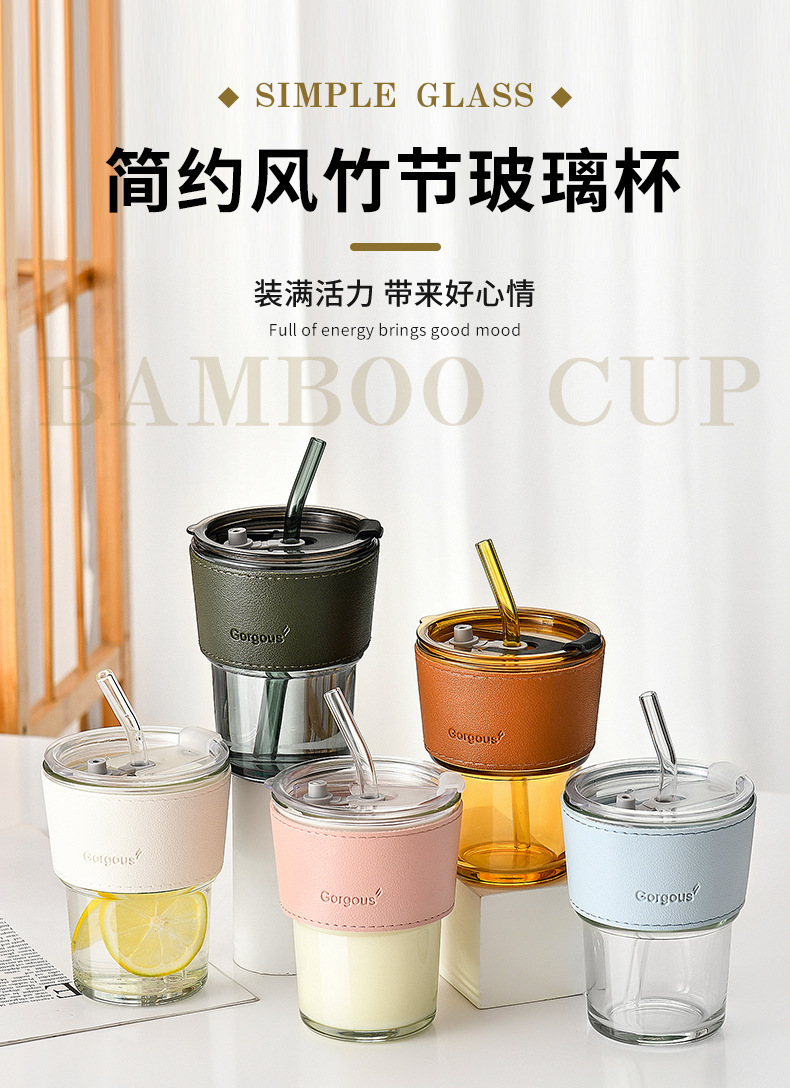 翁楷竹節杯コーヒーカップ北極光グラスストロー付きカップ高颜値ガラス広告カップ