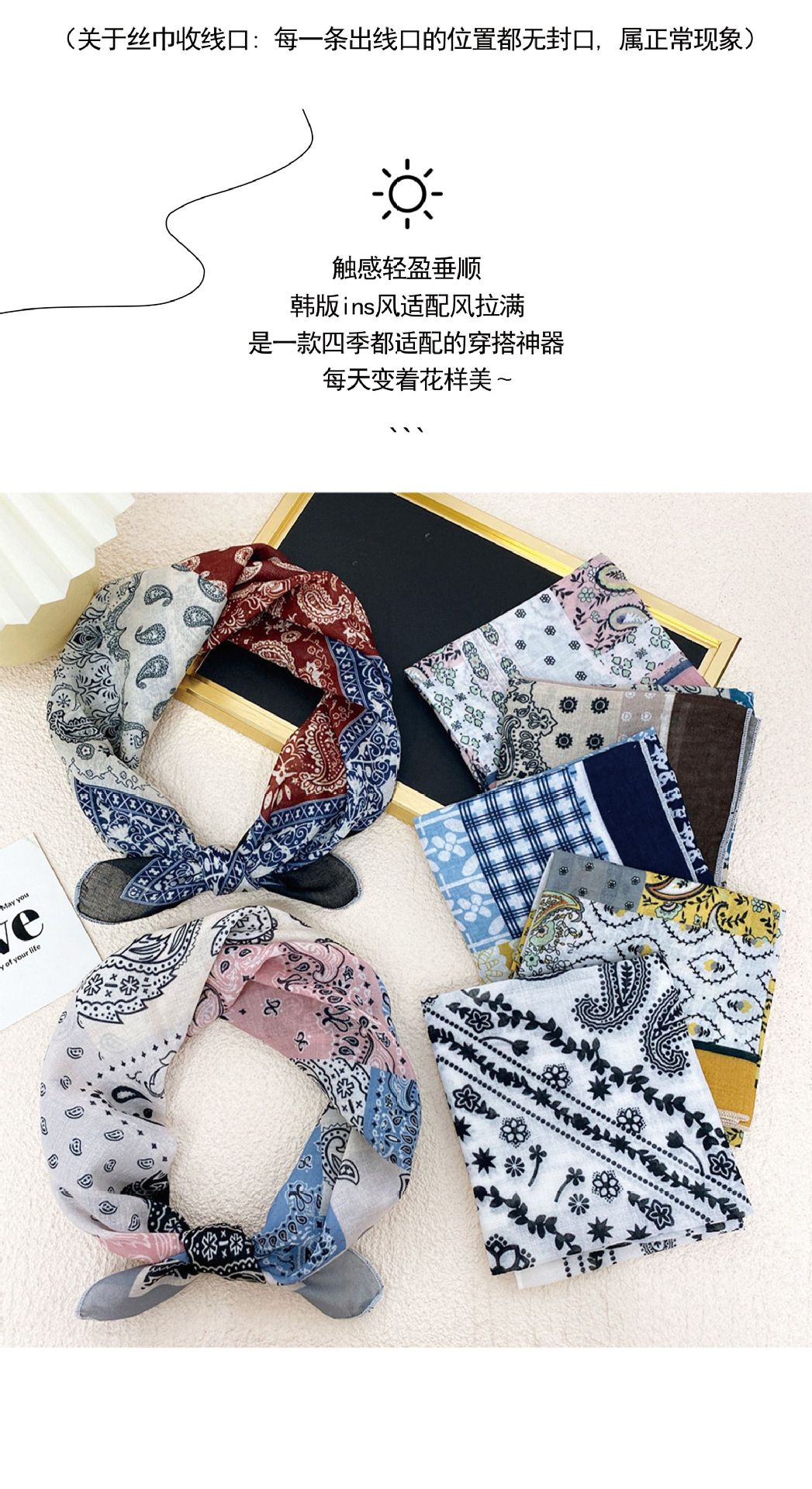 フレンチレトロ風花柄シルクスカーフ、新作多用途ネックタイ、バッグハンドル装飾、おしゃれなヘアバンド、リボンアクセサリー