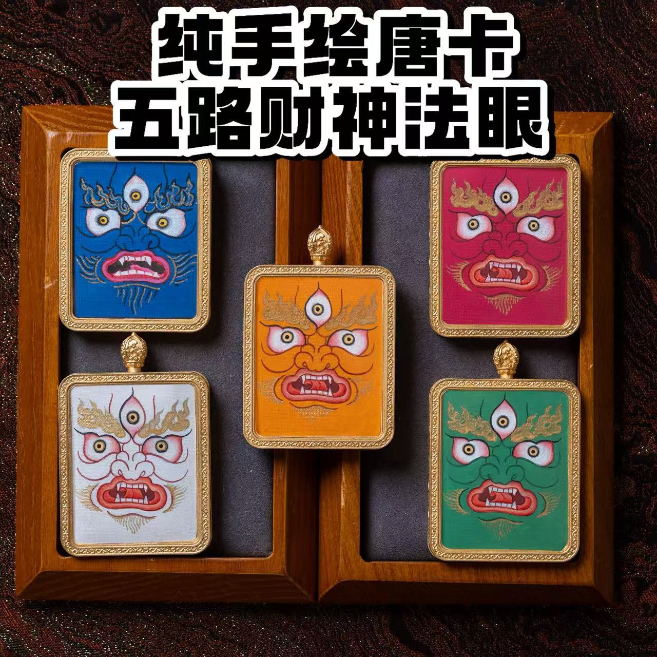 五路財神ネパール純金天然鉱物顔料純手描き唐カード画芯チベット式