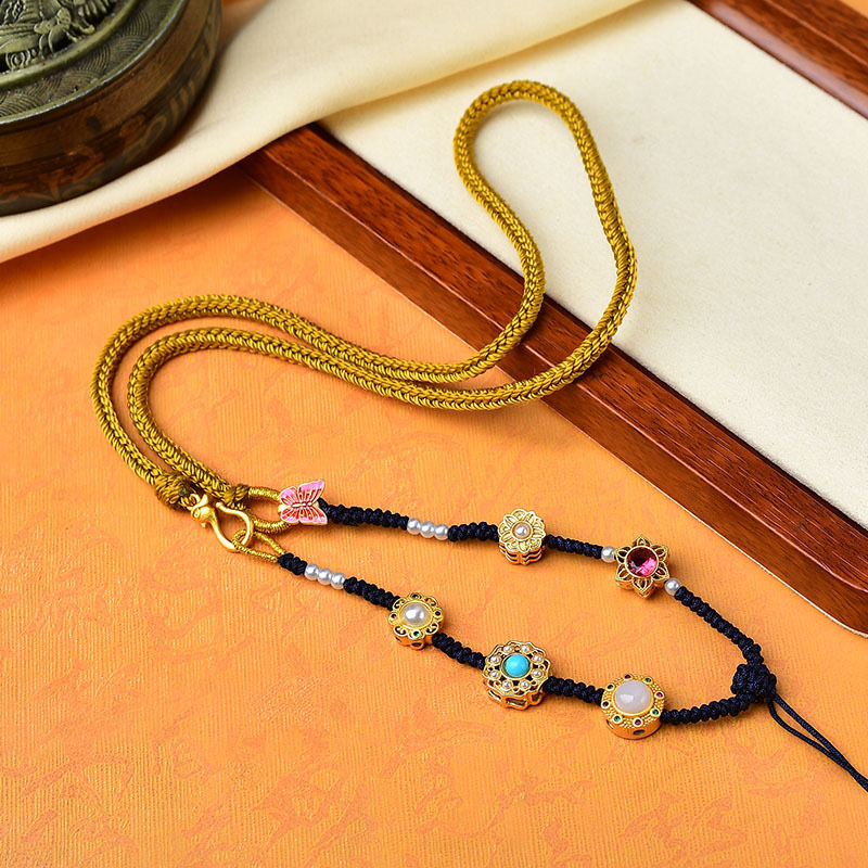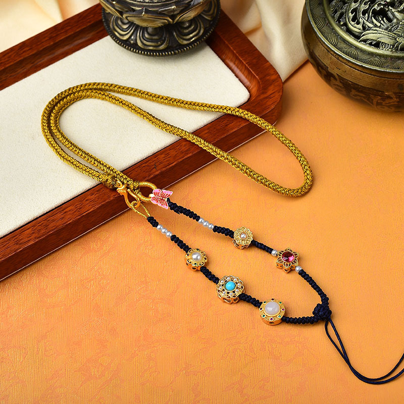 手編みのペンダントのひもは唐カザキラムの男女の民族風の復古の百合の調節のネックレスのひもを掛けることができます。