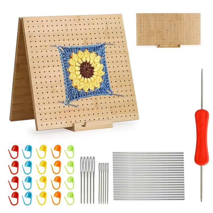 木质可折叠手工编织针织板送奶奶礼物钩针板竹木戳戳绣花片洞洞板