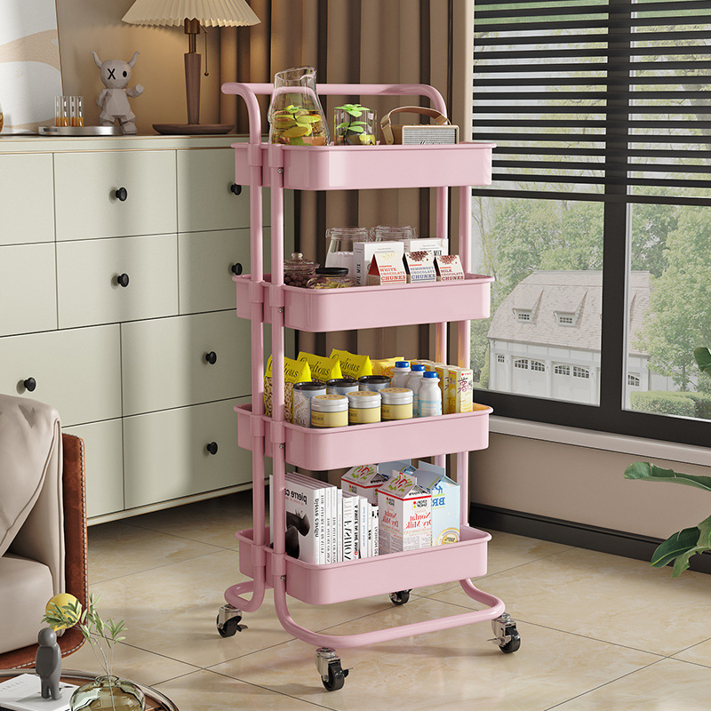 家用小推车置物架卫生间厨房多层置物架子奶油风简约收纳置物架子