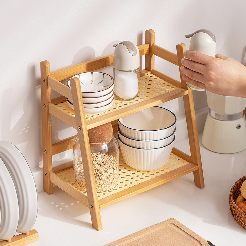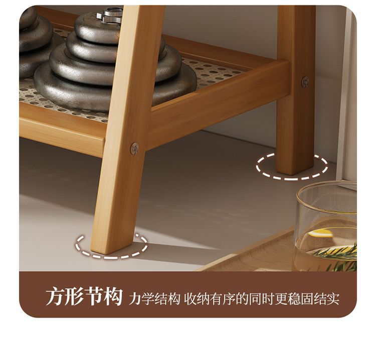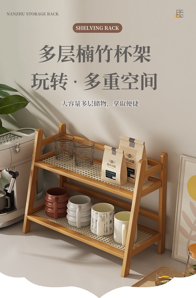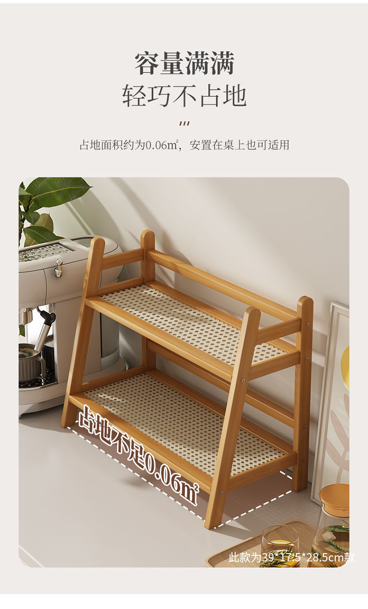 新型藤編シンプル杯棚二重デスクトップ多機能棚キッチン寝室机寮収納棚