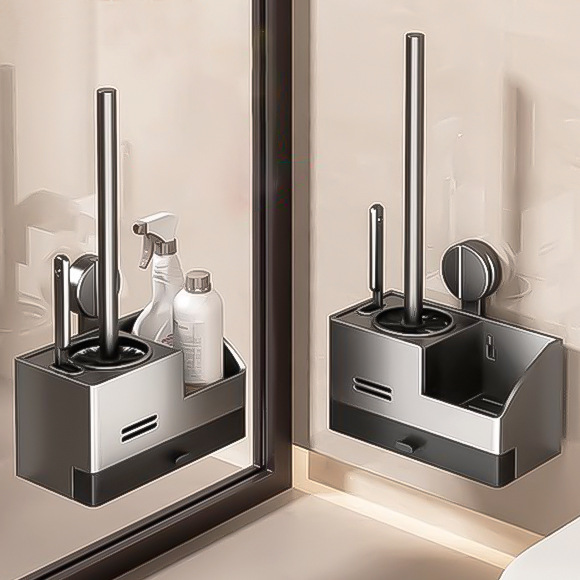 強力吸盤トイレブラシ壁掛け家庭用死角なしパンチフリー壁掛けトイレブラシ掃除トイレブラシ
