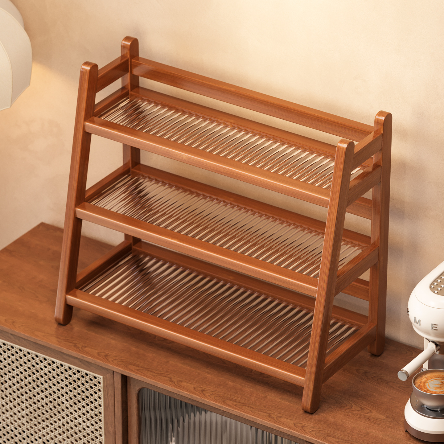 物置棚が着地した多層デスクトップ台形物置棚本棚一体ネット赤プラスチック藤クリーム風家庭用キッチン棚