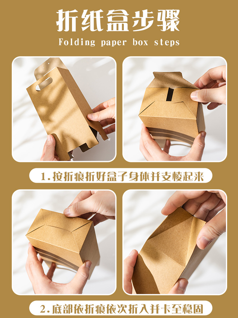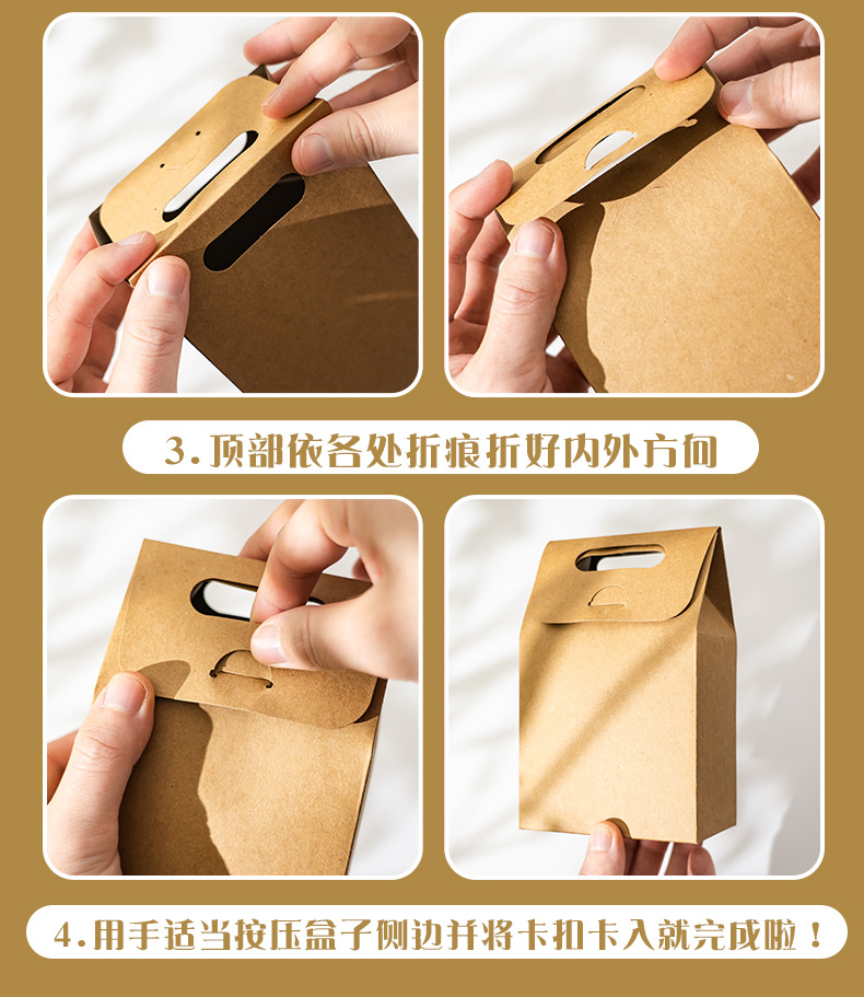 ポータブルクラフト紙袋ビスケットクッキーマカロンケーキボックスフリップトップ包装箱シンプルなヌガークッキーボックス