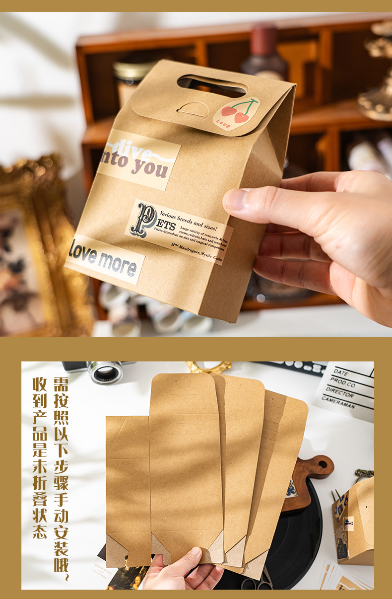 仕様とモデル ポータブルクラフト紙箱; 9.8*6*15cm,DIYデコレーションステッカー/1枚;9.8*6*15cm