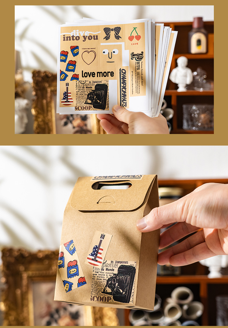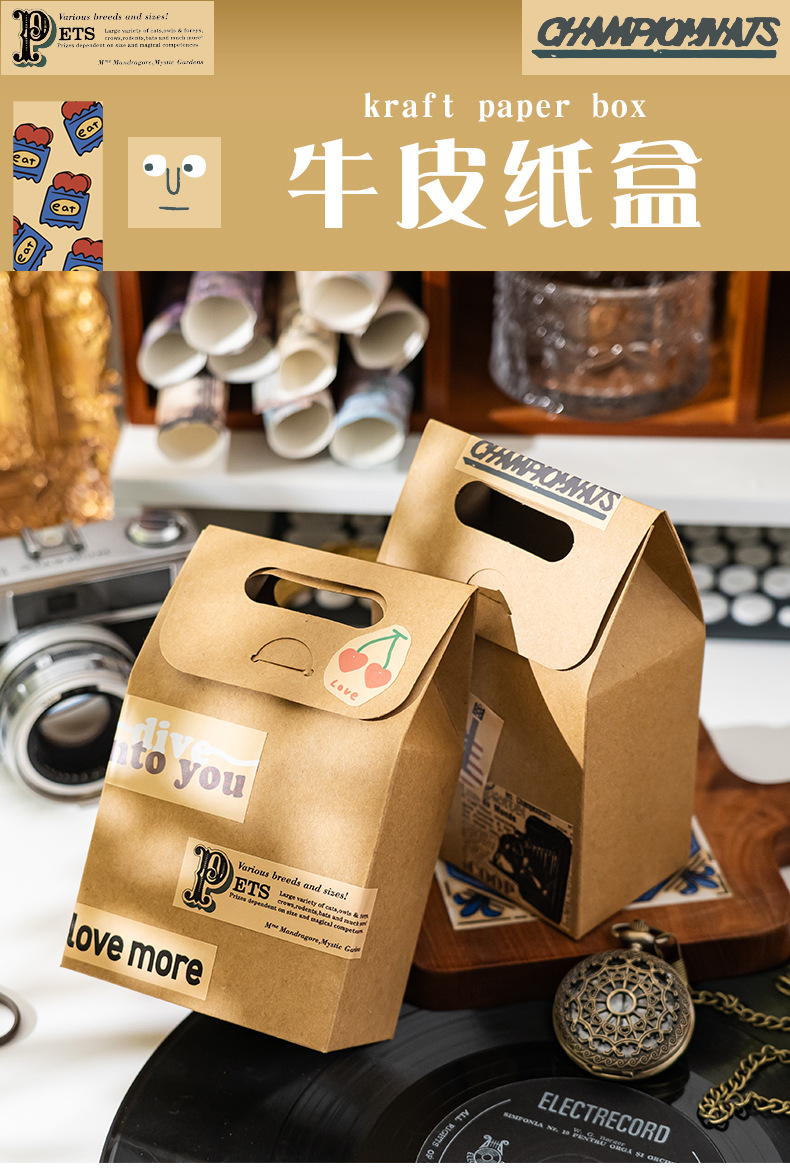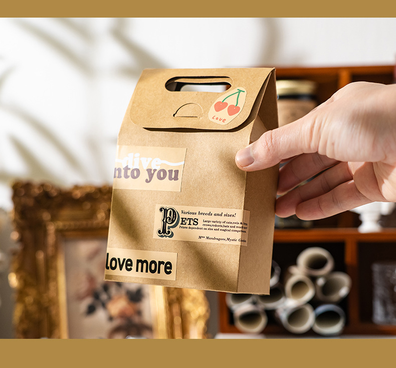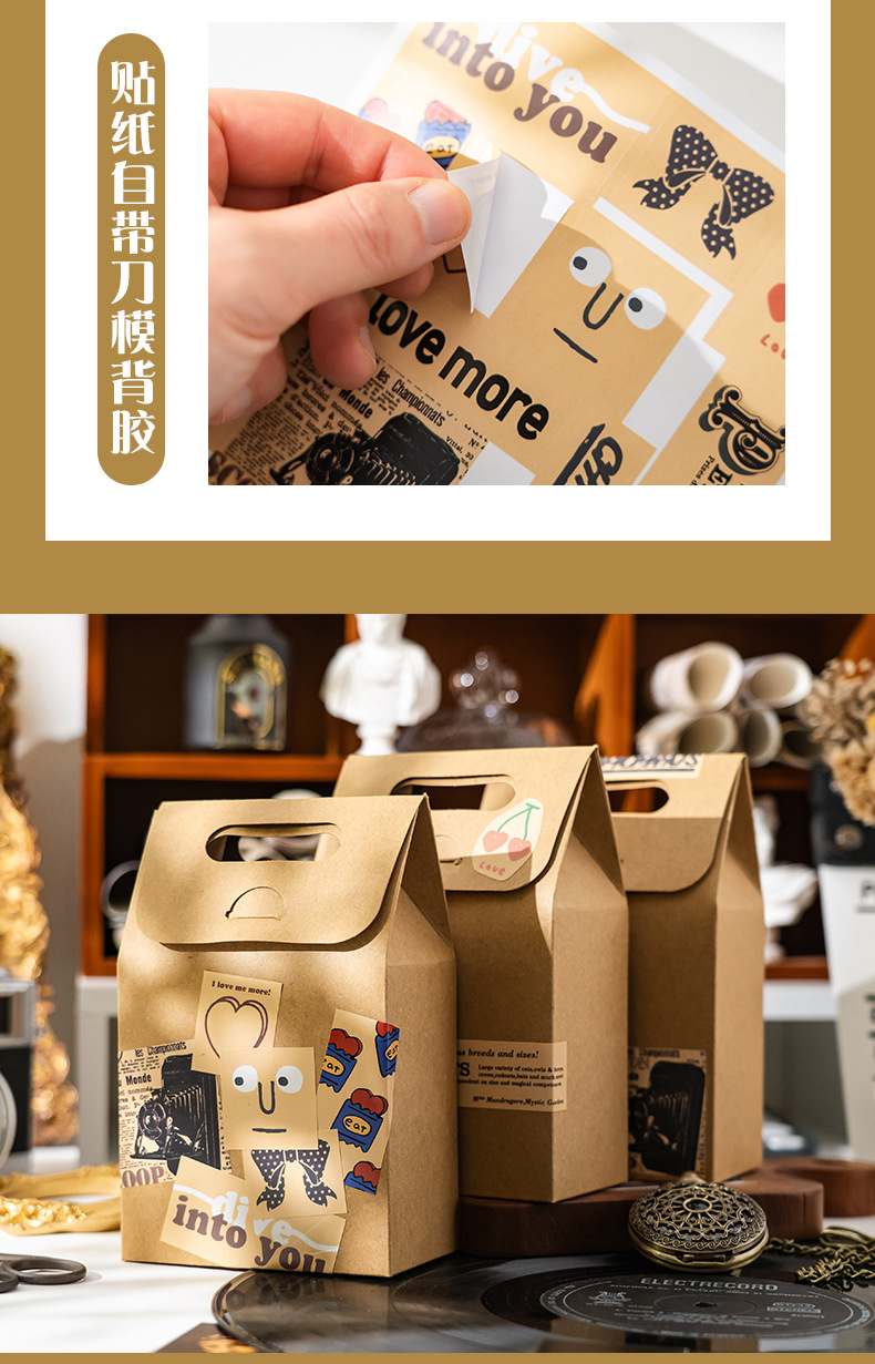携帯用クラフト紙箱,DIYデコレーションステッカー/1枚